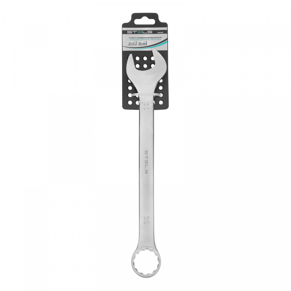 Ключ комбинированный, 30 мм, CrV, матовый хром Stels
