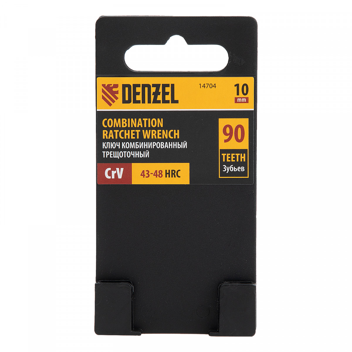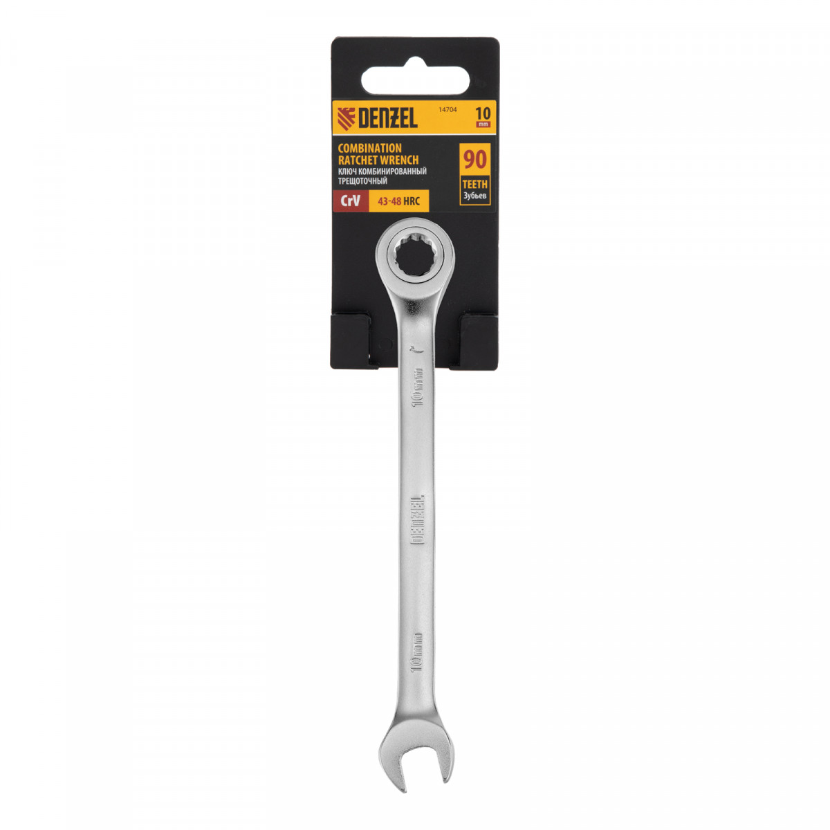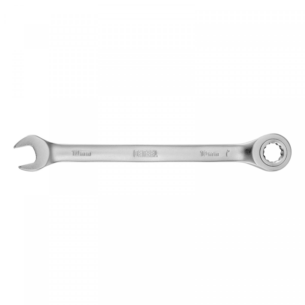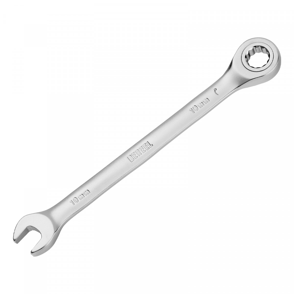 Ключ комбинированный трещоточный, 10 мм, CrV, матовый хром Denzel