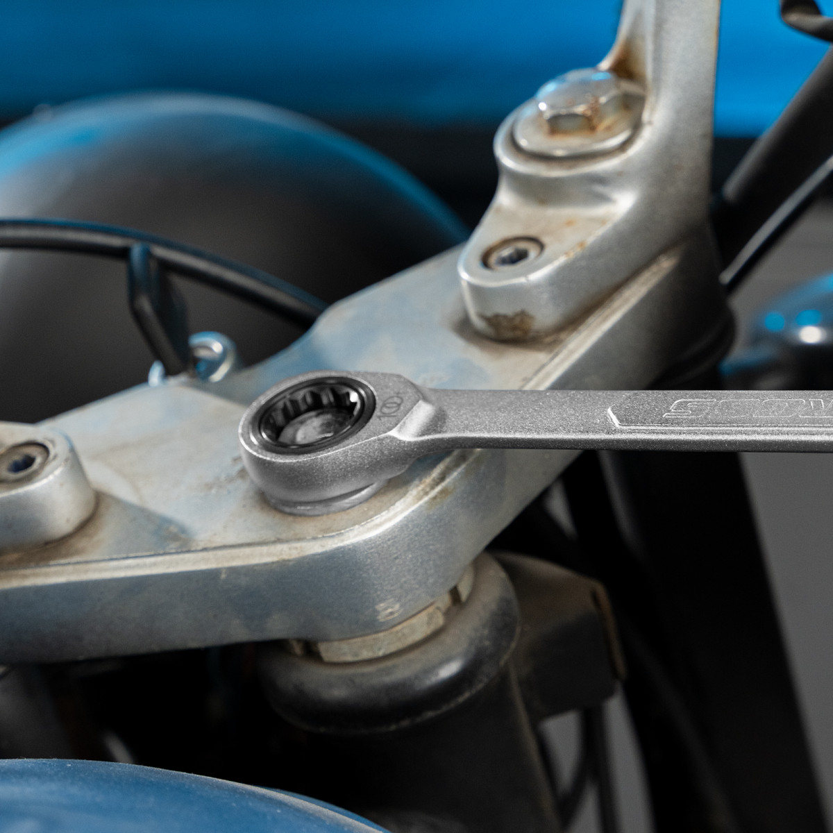 - Храповый механизм оснащен 100 зубцами, что обеспечивает плавность хода инструмента (шаг трещотки всего 3,6 градусов) и делает его удобным для работы в ограниченном пространстве.