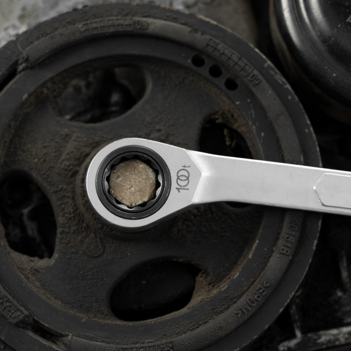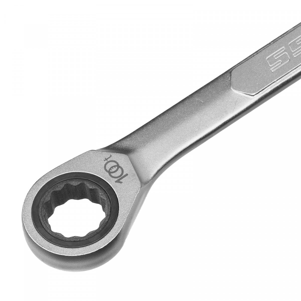 - Храповый механизм оснащен 100 зубцами, что обеспечивает плавность хода инструмента (шаг трещотки всего 3,6 градусов) и делает его удобным для работы в ограниченном пространстве.