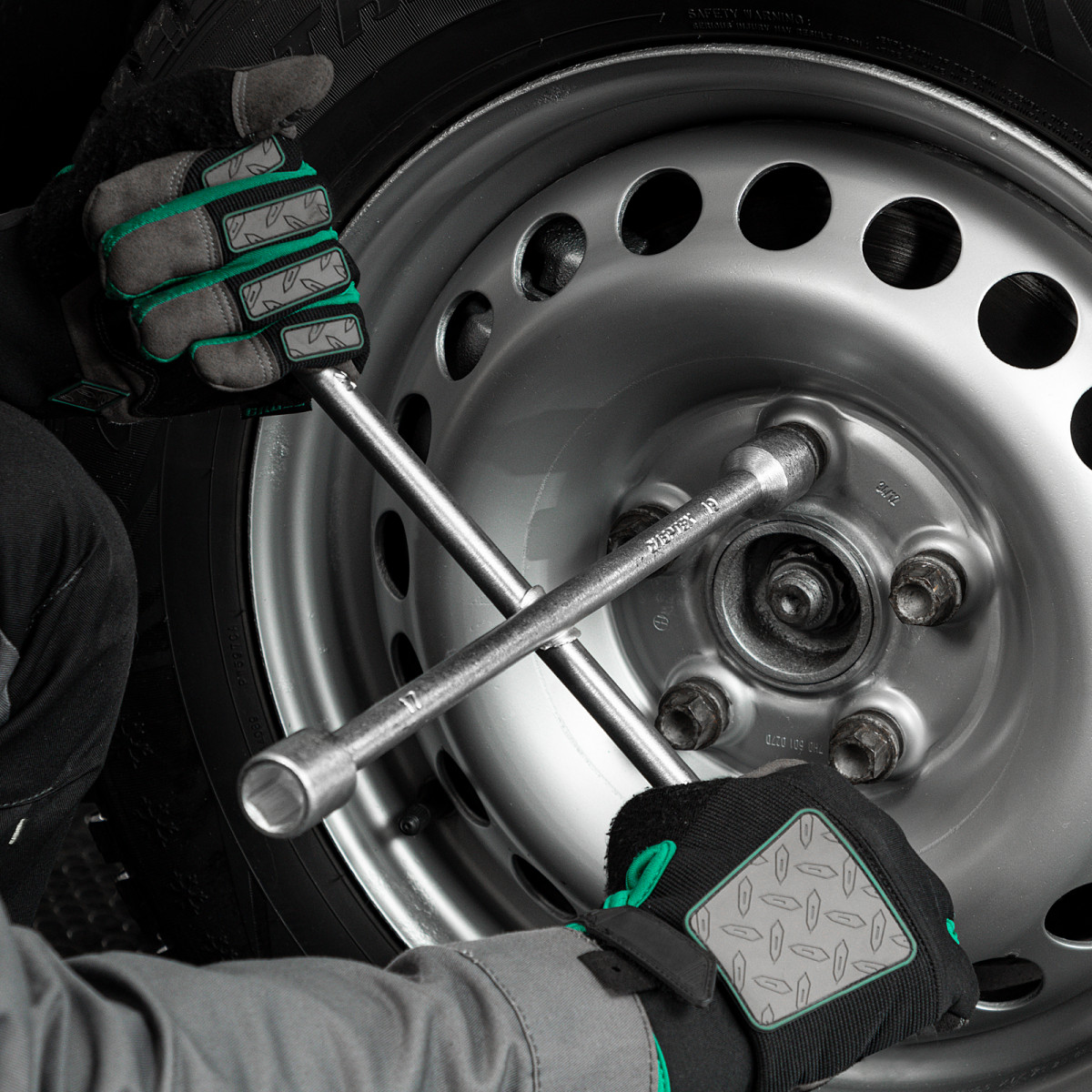 Баллонный ключ-крест Сибртех 14257 с толщиной прутьев 14 мм и размерами головок 17, 19, 21 и 22 мм используется для снятия и монтажа автомобильных колес. 4 несъемные шестигранные торцевые головки подходят для колесных гаек и болтов наиболее распространенных размеров. Инструмент будет полезен работникам станций шиномонтажа и автосервисов, а также пригодится автовладельцам.
