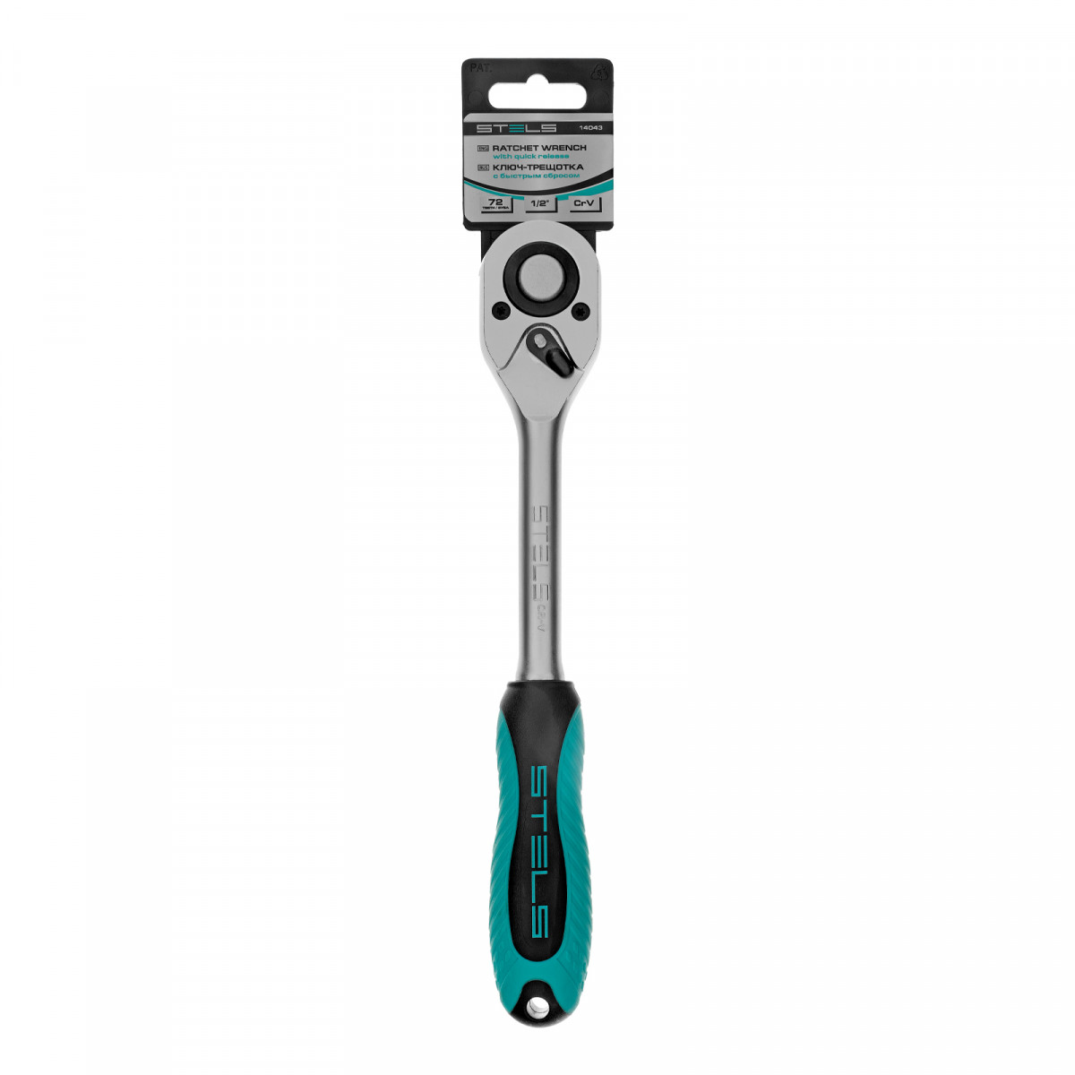 Ключ-трещотка 1/2", CrV, 72 зуба, с быстрым сбросом, матовый хром Stels