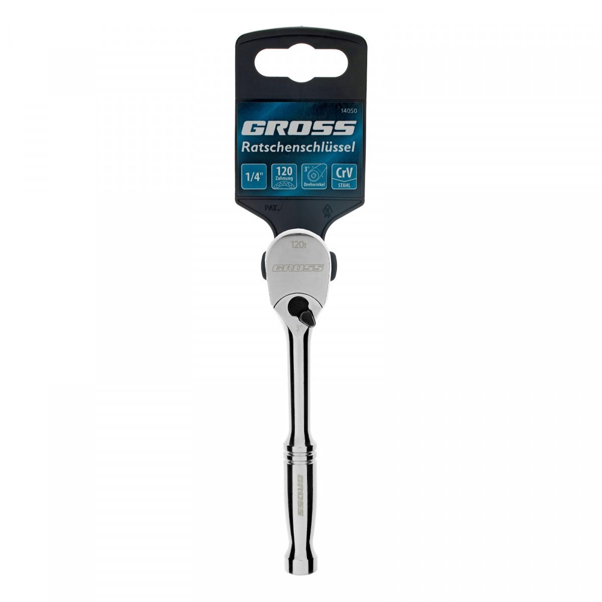 Ключ-трещотка 1/4", CrV, 120 зубьев, цельнометаллический, хром Gross