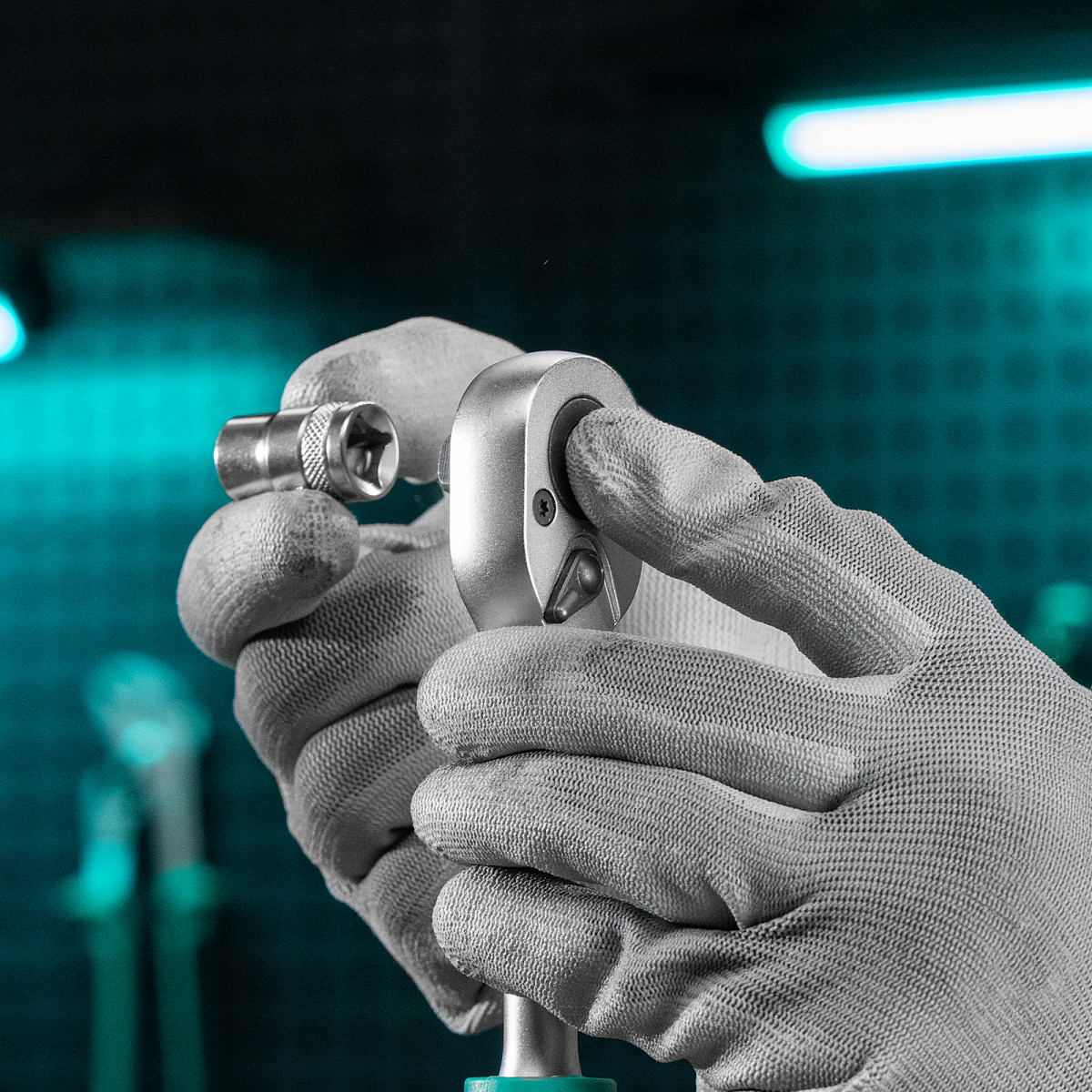 • Шариковый фиксатор — торцевые головки и другие насадки не соскакивают во время работы.
