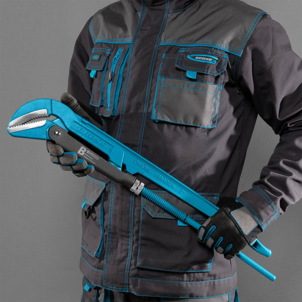 • Высокая прочность — цельнокованый корпус изготовлен из хромованадиевой стали, а губки закалены до твердости 57-60 HRC.
