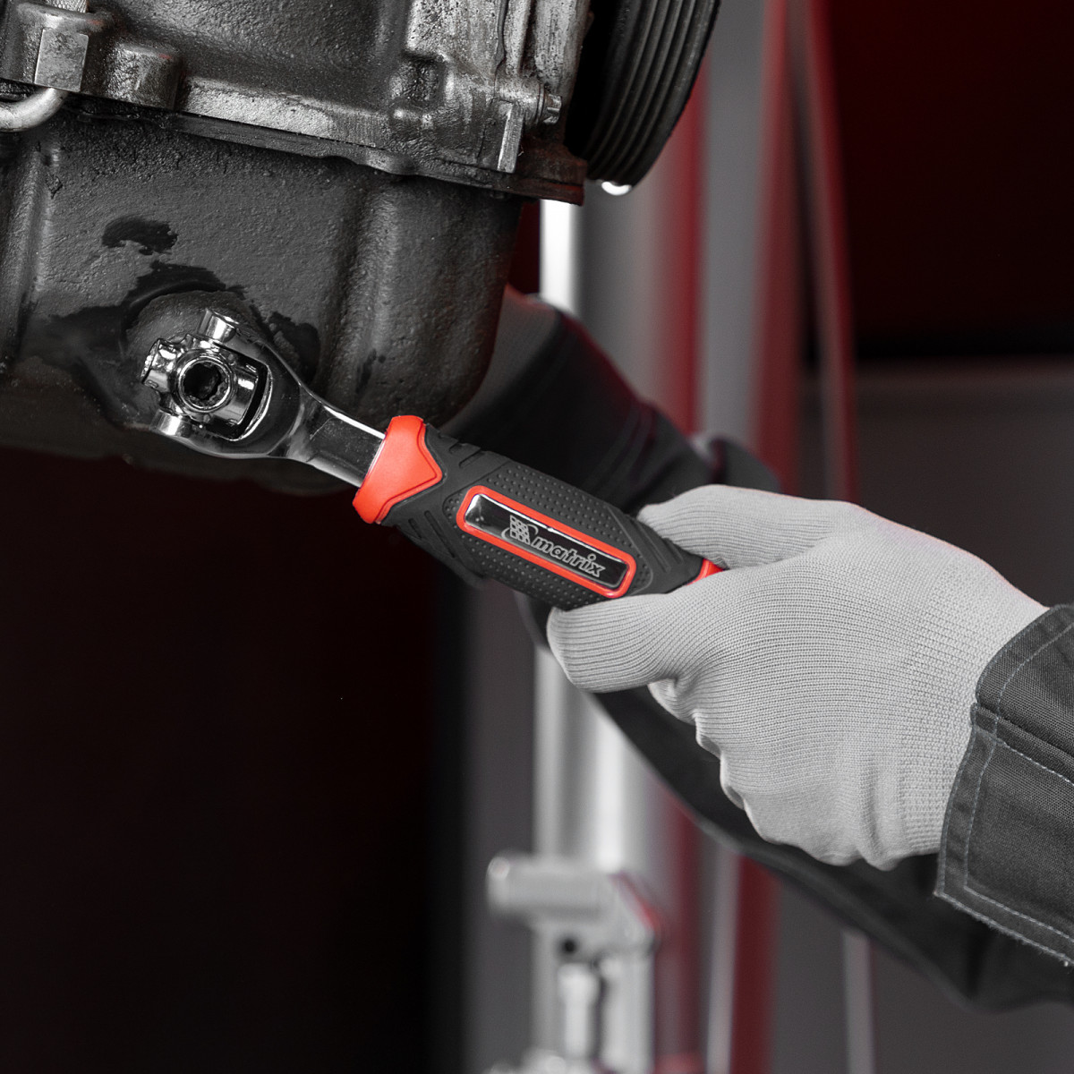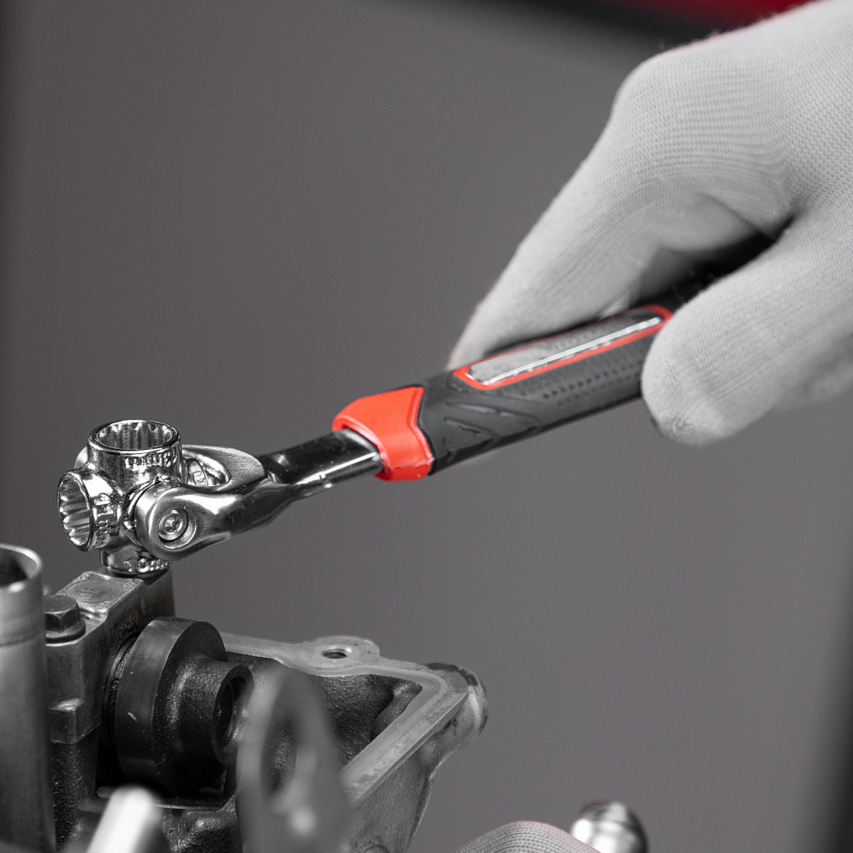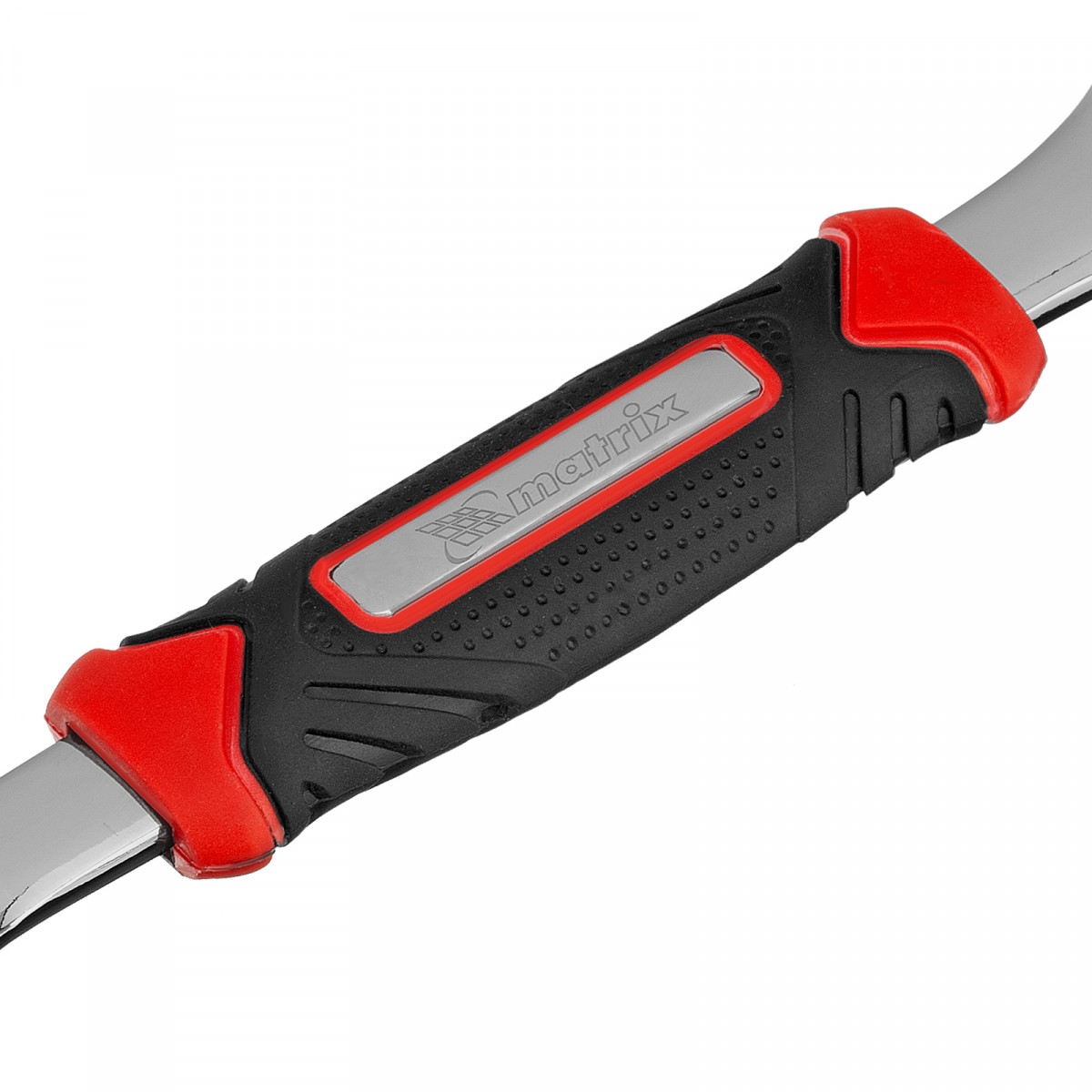 Ключ универсальный 48 в 1 Matrix 14999 из стали CrV имеет 8 размеров головок: 8 мм, 10 мм, 11 мм, 13 мм, 14 мм, 16 мм, 17 мм, 19 мм. Подходит для различных профилей: 6-гранных, 8-гранных, 12-гранных, Square, Torx, Spline. Предназначен для монтажа и демонтажа болтовых соединений. Поворот головки на 360° и угол наклона 45° позволяют работать в труднодоступных местах. Конструкция головки позволяет закручивать и откручивать крепежи на высоких шпильках.