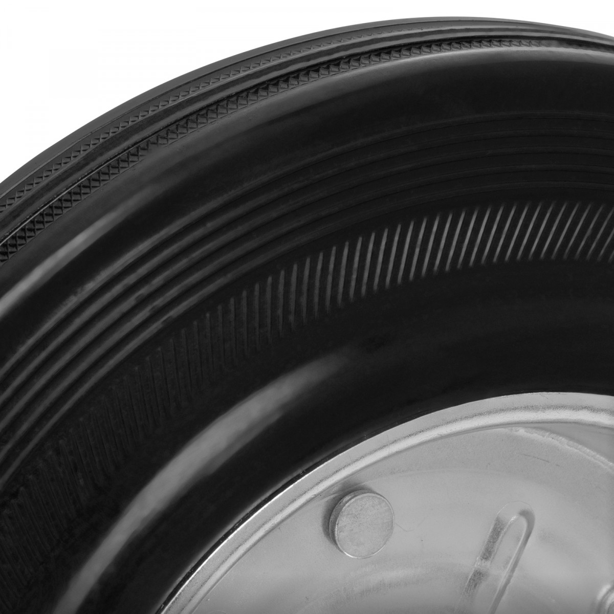 - Универсальность — контактная поверхность выполнена из прочной резины, поэтому колесо может применяться на различных покрытиях, долгое время сохраняя рабочие качества.