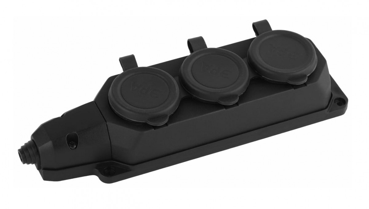 Колодка ЭРА K-3e-B-IP44 каучуковая с заземлением 3 розетки 16A IP44 черная