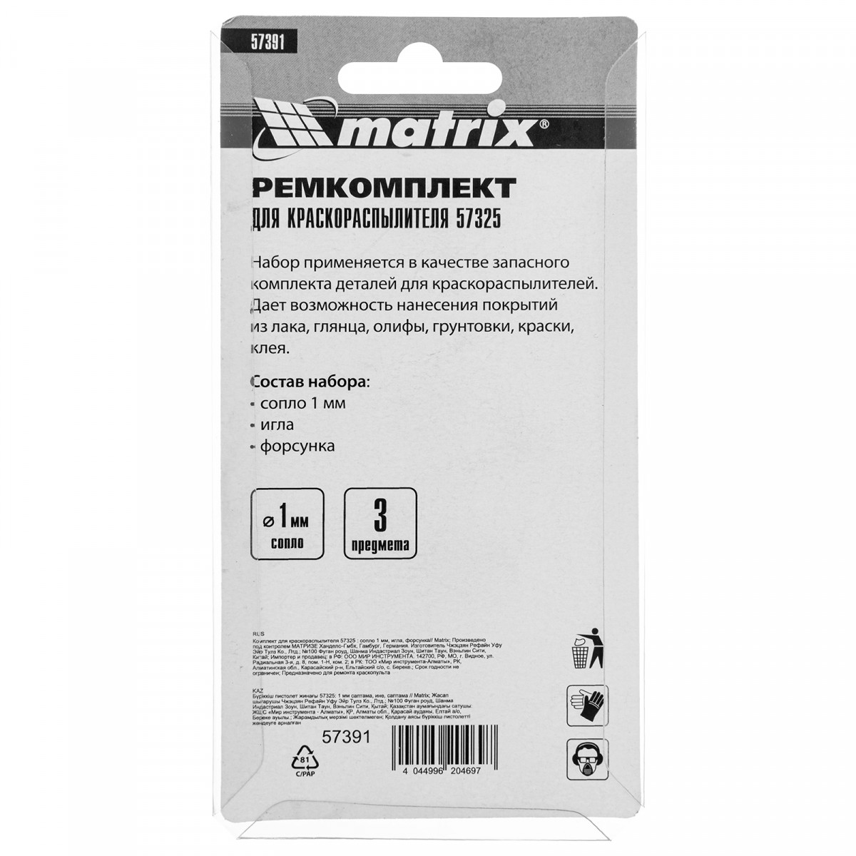 Комплект для краскораспылителя 57325 : сопло 1 мм, игла, форсунка Matrix