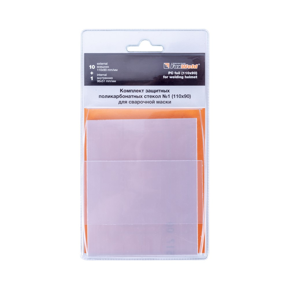 КОМПЛЕКТ ПОЛИКАРБОНАТНЫХ СТЕКОЛ №1 (10 ВНЕШНИХ 110Х90ММ, 1 ВНУТРЕННЕЕ 96Х51ММ, ДЛЯ МАСОК КОРУНД/КОМЕТА/ИСКРА)