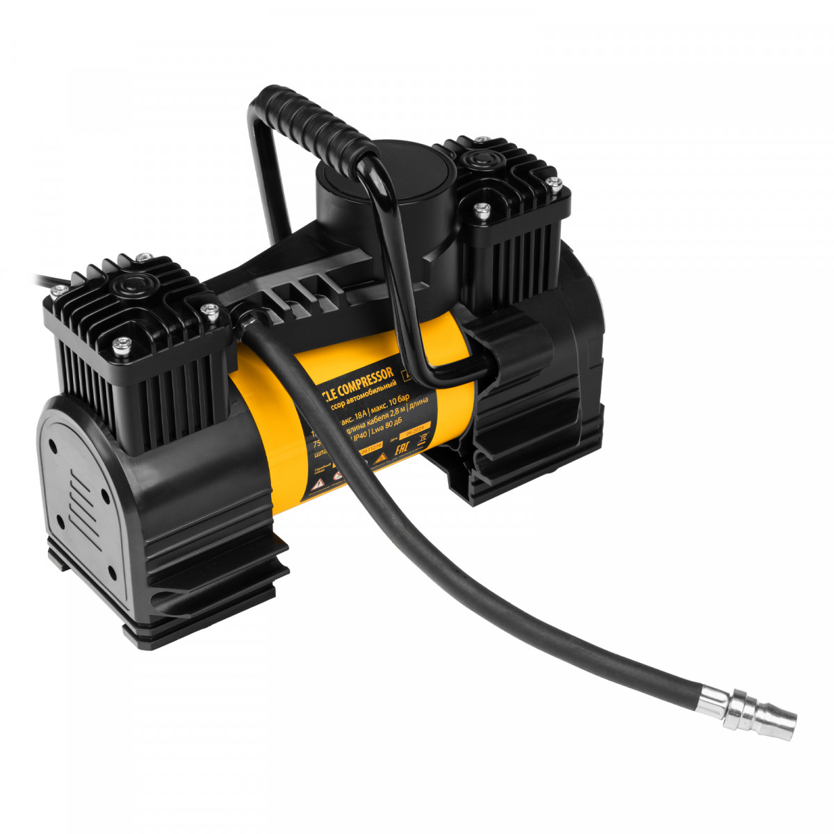 Автомобильный двухпоршневой компрессор Denzel AC-75 58051 производительностью 75 л/мин, с LED-фонарем, работает от сети 12 В, поддерживает давление 10 атм. и предназначен для быстрой и эффективной накачки шин, резиновых матрацев и других надувных предметов. Для этого в комплект поставки входит 3 насадки. Компрессор подключается к автомобильному аккумулятору при помощи клемм. Благодаря двухпоршневой конструкции отличается высокой производительностью — накачка шины R16 занимает не более 3-4 минут. Станет незаменимым помощником в поездке и на отдыхе.