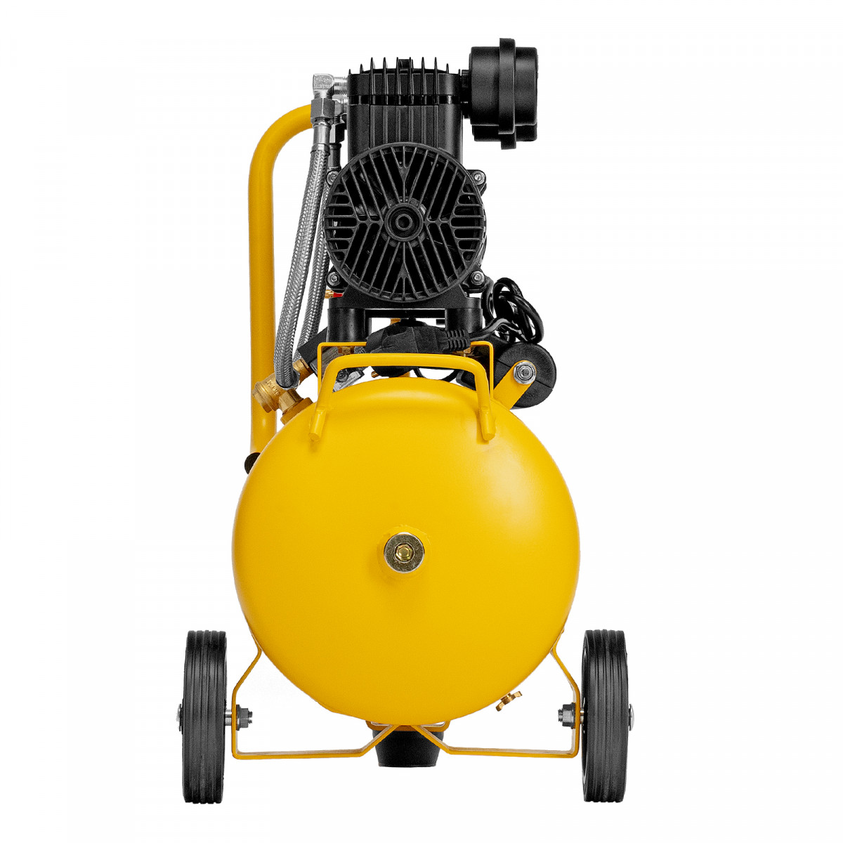 • Мобильность — 2 колеса и транспортировочная рукоятка упрощают перемещение компрессора по рабочей зоне.