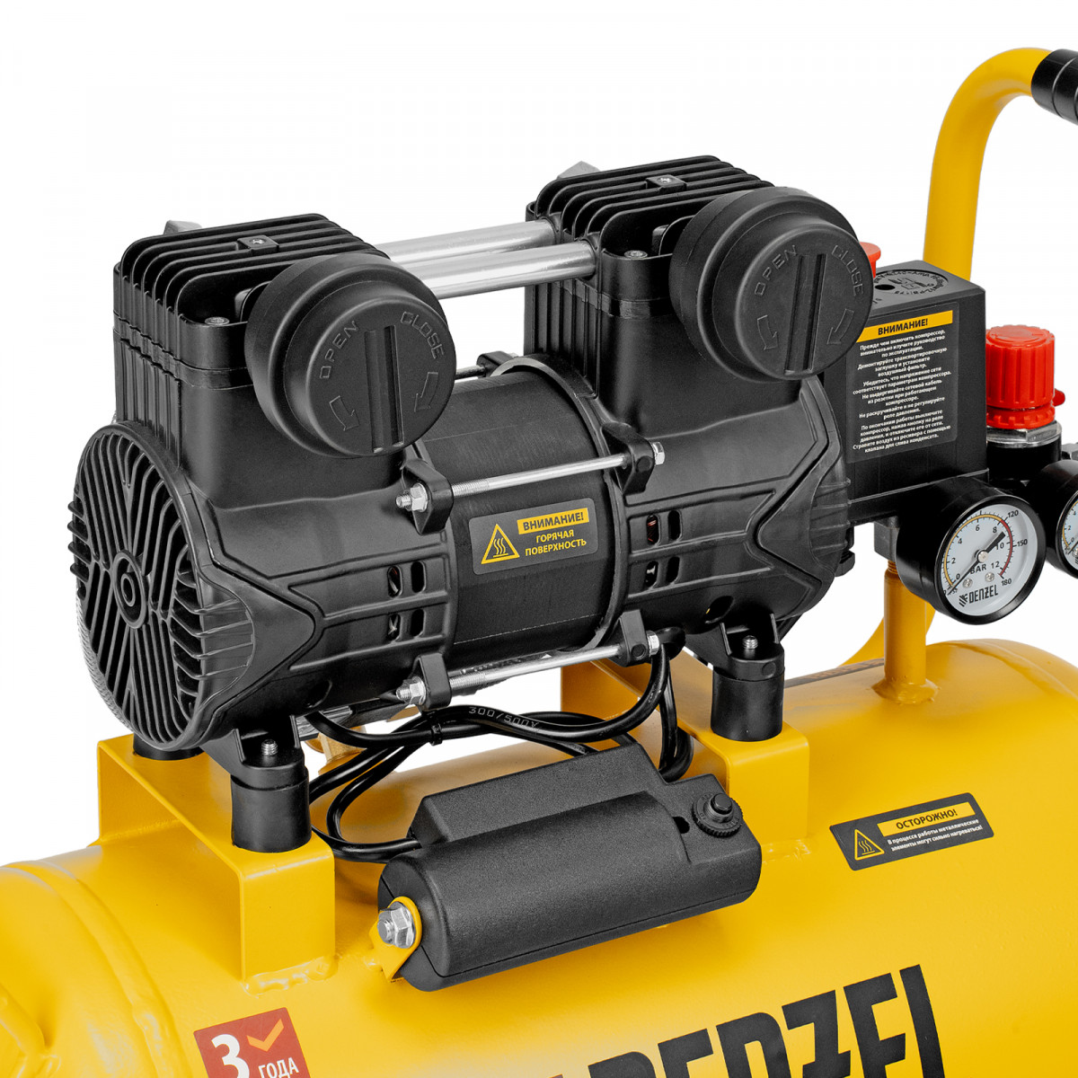 Компрессор безмасл. малошумный DLP-950/24, 950Вт,24 л, 2850 об/мин, 170 л/мин Denzel