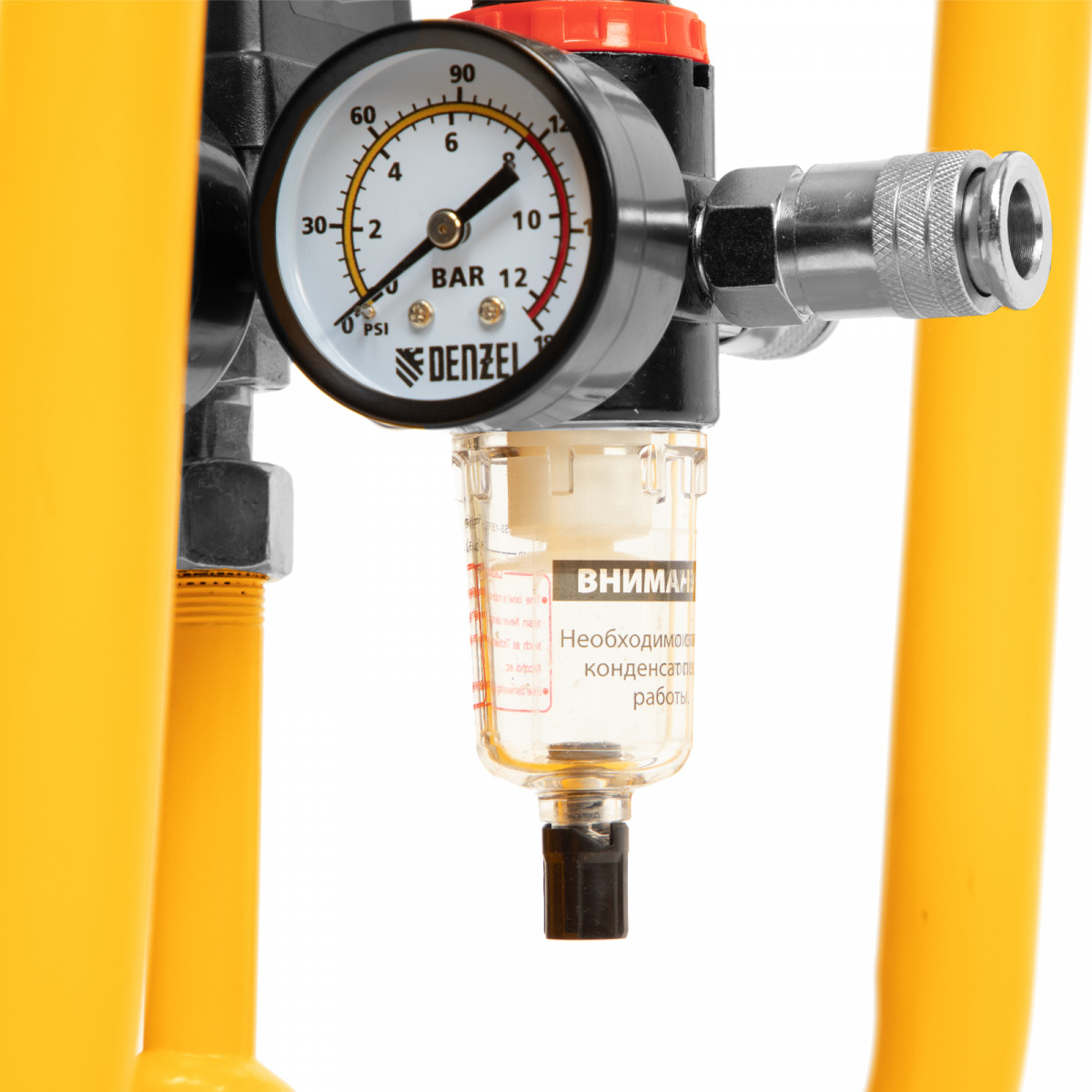 Безмасляный малошумный компрессор Denzel DLS 1500/50 58027 мощностью 1500 (2 х 750) Вт, объемом ресивера 50 л и производительностью 260 л/мин предназначен для обеспечения пневмоинструмента сжатым воздухом, подаваемым под давлением до 8 бар. Позволяет подключить пневматический заклепочник, дрель и т.д. Оптимален для работы с краскопультом и для продувки электронных компонентов, т. к. в сжатом воздухе отсутствуют частицы масла. Компрессор пригодится в мастерской, гараже, на строительной площадке.