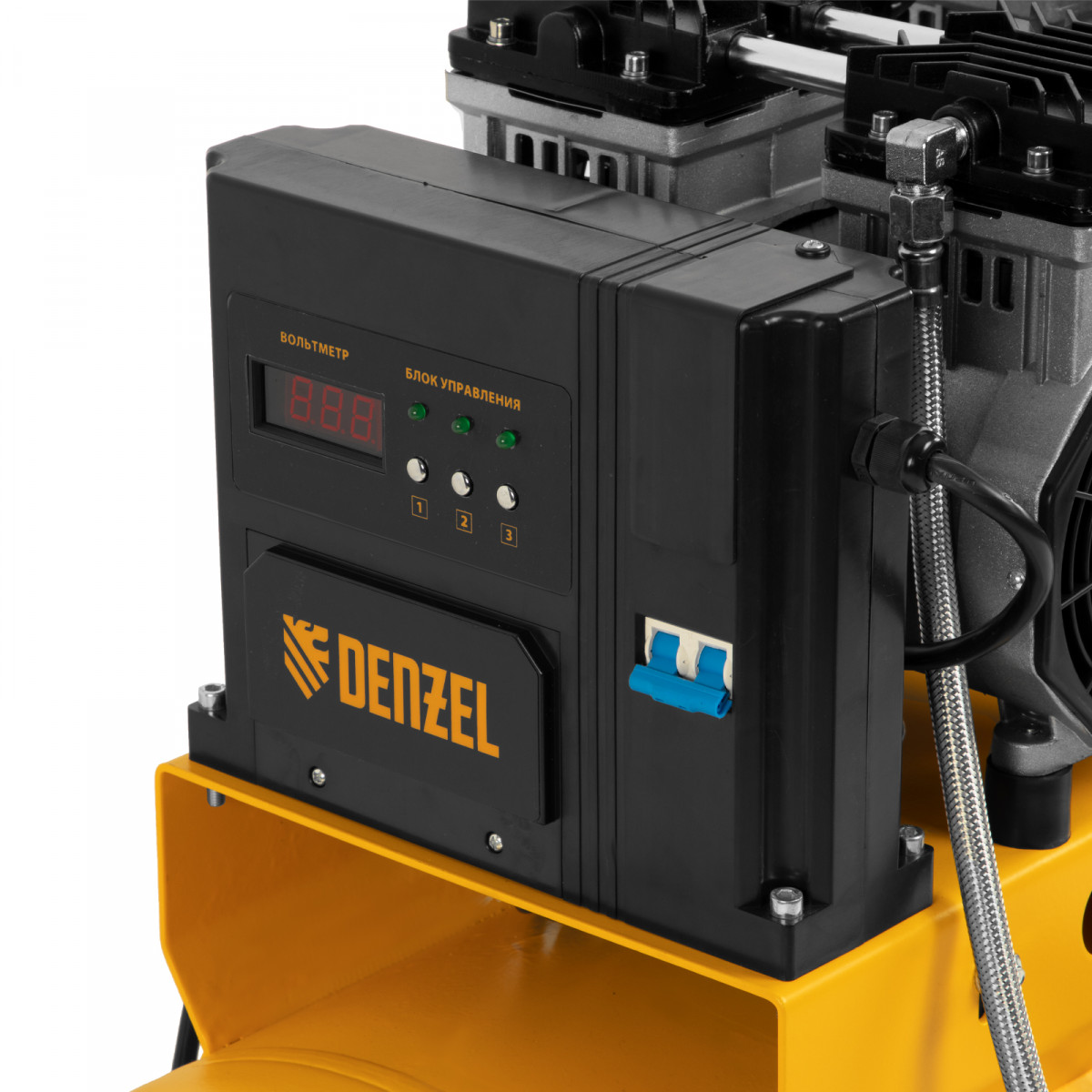 Компрессор безмасляный, малошумный DLS 3300/100, 3300 Вт,3x1100, 100 л, 570 л/мин ,блок управления Denzel