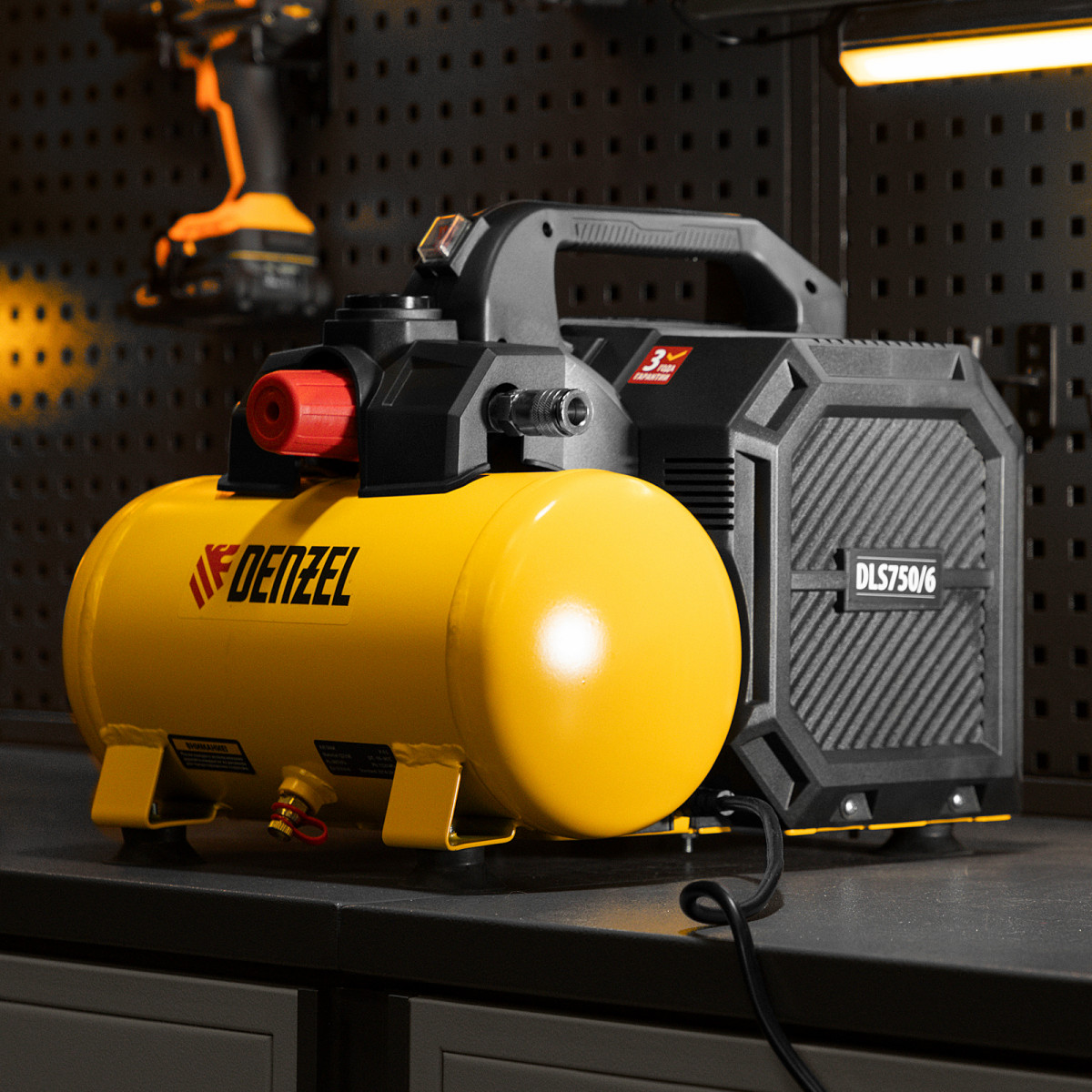 Компрессор DLS750/6 безмасляный малошумный 750 Вт, 140 л/мин,ресивер 6 л Denzel