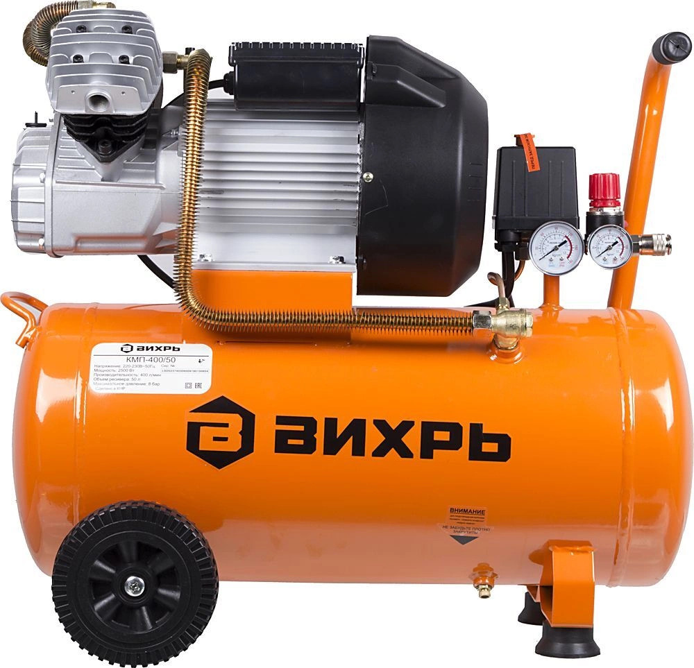 Компрессор Вихрь КМП-400/50 74/3/6 представляет собой надёжный агрегат, который применяется для нагнетания сжатого воздуха. Данная модель имеет встроенный манометр и функцию регулировки давления.