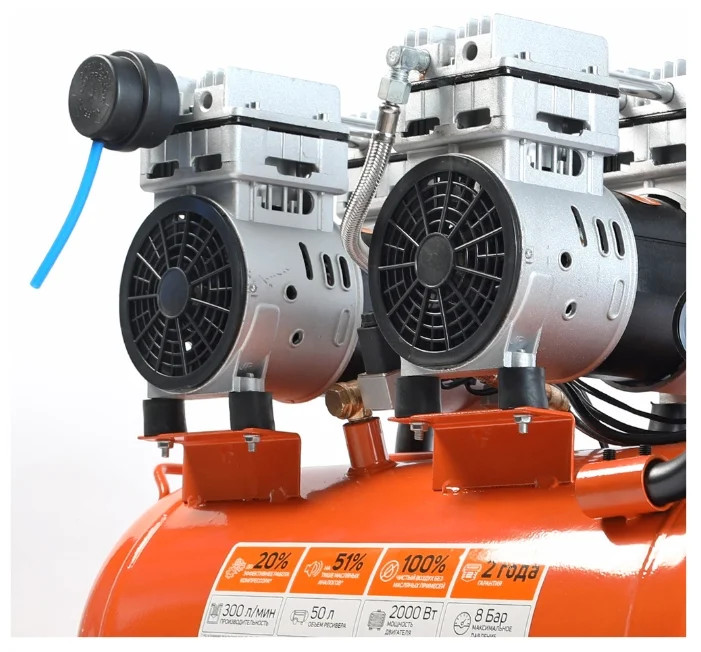 Компрессор отличается низким уровнем шума во время работы. Не требует сложного обслуживания.