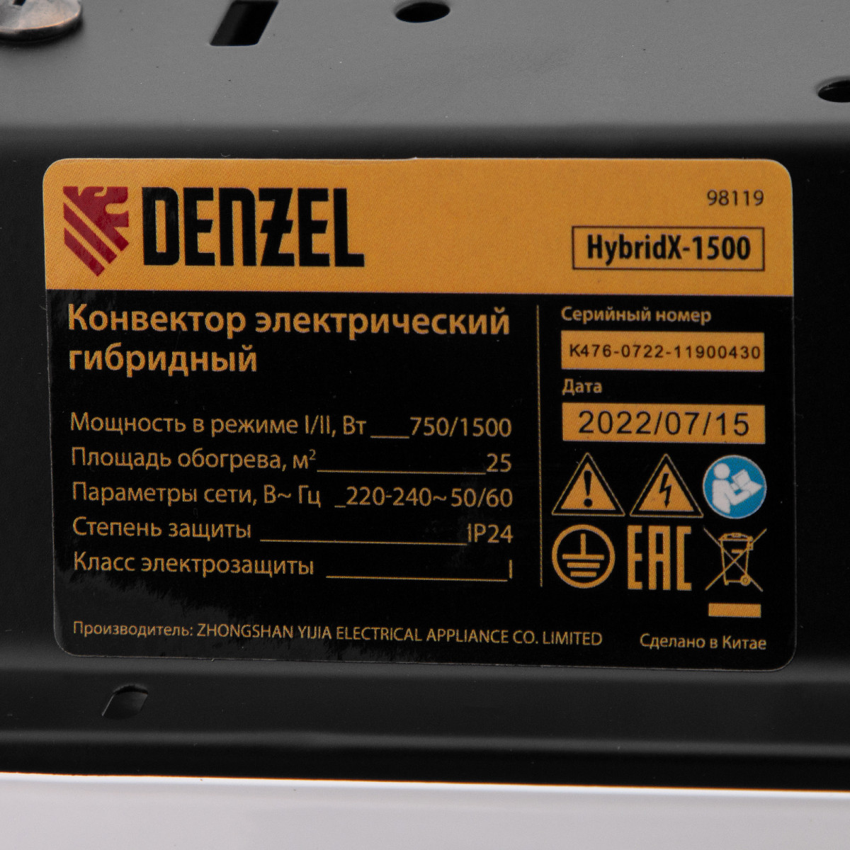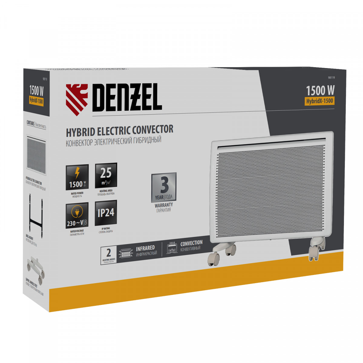 Конвектор гибридный электрический HybridX-1500, ИК нагреватель, цифровой термостат Denzel