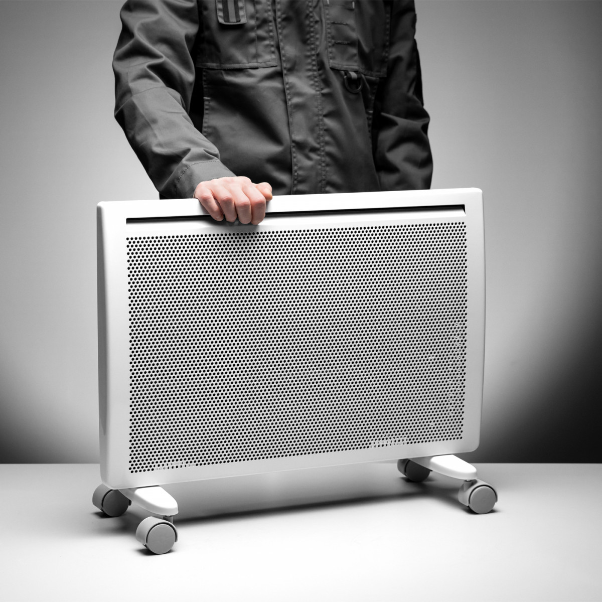• Высокая энергоэффективность — гибридный нагревательный элемент излучает инфракрасное тепло и одновременно обеспечивает конвекцию воздуха, что позволяет прогревать помещение заметно быстрее при тех же затратах энергии.