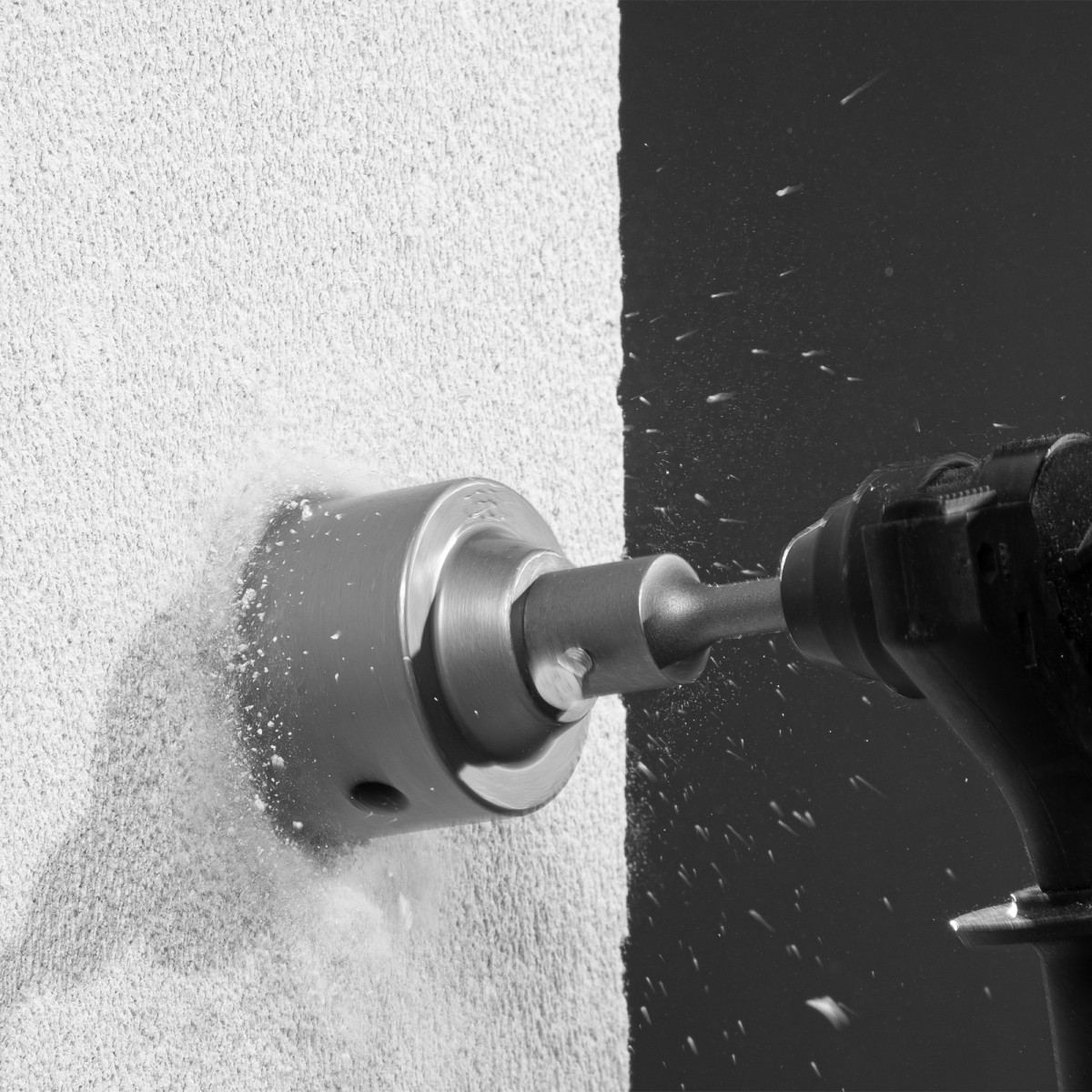 - Ровные отверстия — гладкий корпус коронки уменьшает трение, а центрирующее сверло предотвращает смещение коронки.