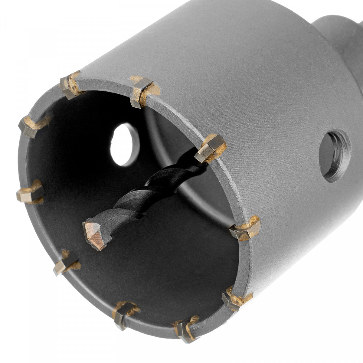 - Ровные отверстия — гладкий корпус коронки уменьшает трение, а центрирующее сверло предотвращает смещение коронки.