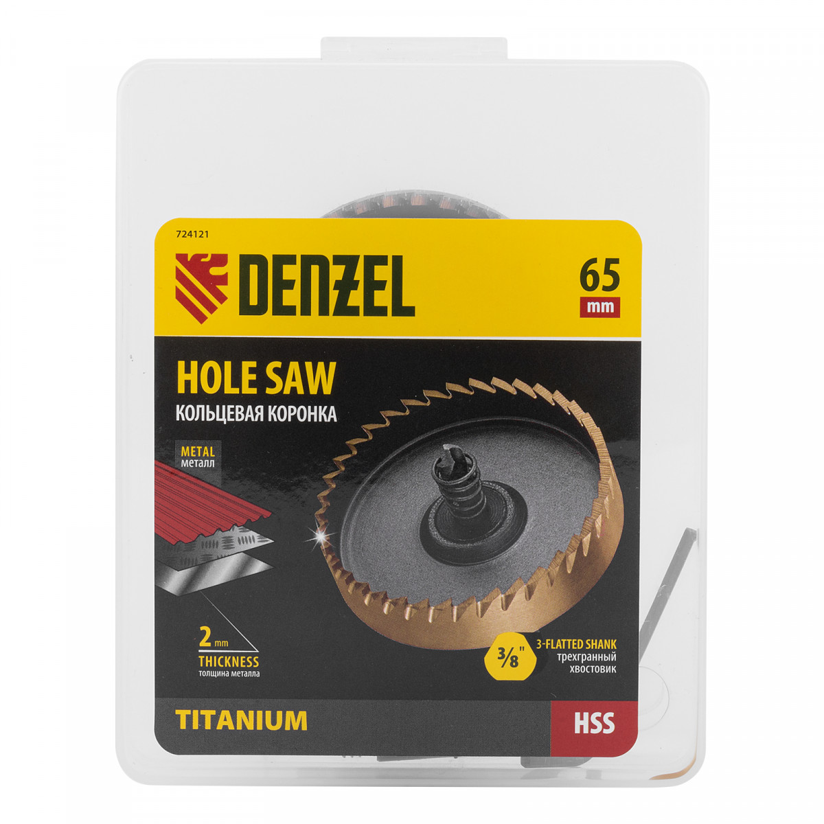 Коронка по металлу HSS, 65 мм, нитридтитановое покрытие Denzel