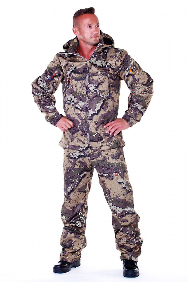 Костюм идеально подойдет для повседневной носки и активного отдыха в демисезонный период. Костюм гарантированно обеспечит максимум комфорта при занятии любимым увлечением. Температурный режим до -5С.При использовании костюма рекомендуется носить термобелье. Анатомический удобный крой. Камуфляжный рисунок ткани. Застежка центральная с двухзамковой молнией под ветрозащитной планкой. Воротник-стойка. 5 карманов внешних и 2 внутренних. Капюшон с регулировкой объема с фиксаторами упаковывается в карман с молнией в воротнике. Ширина низа рукава регулируется патой с контактной лентой и эластичной тесьмой. Внутренний воротник со вставкой из флиса. По низу внутренняя кулиса регулируется по ширине эластичным шнуром с фиксаторами. На брюках 4 кармана. На поясе застежка-гульфик с молнией и на кнопке. Пояс с эластичными боковыми вставками. На поясе шлевки под ремень. По низу эластичный шнур с регулировкой ширины и на фиксаторах.