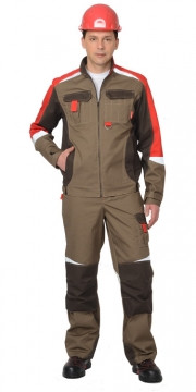 Костюм "Фаворит-Мега" летний, куртка, п/комб. кофейный с корич. и красн., тк.Rodos/Tomboy