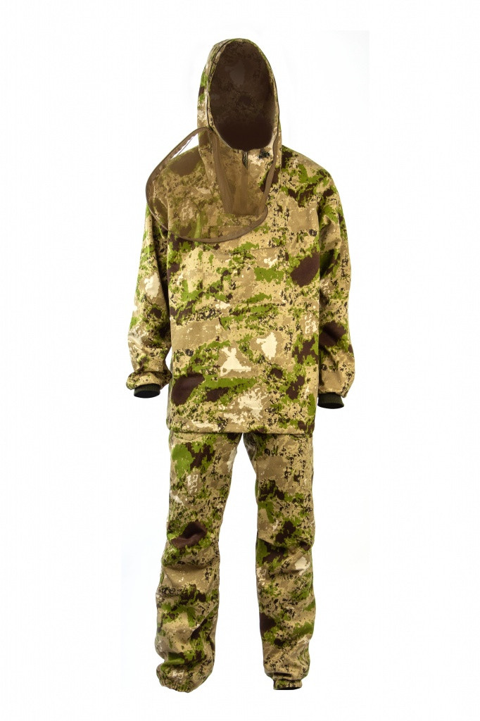 Костюм «Антигнус» в расцветке тундра представляет собой классический противоэнцефалитный костюм. Он состоит из куртки типа «анорак» с капюшоном и брюк прямого кроя.
