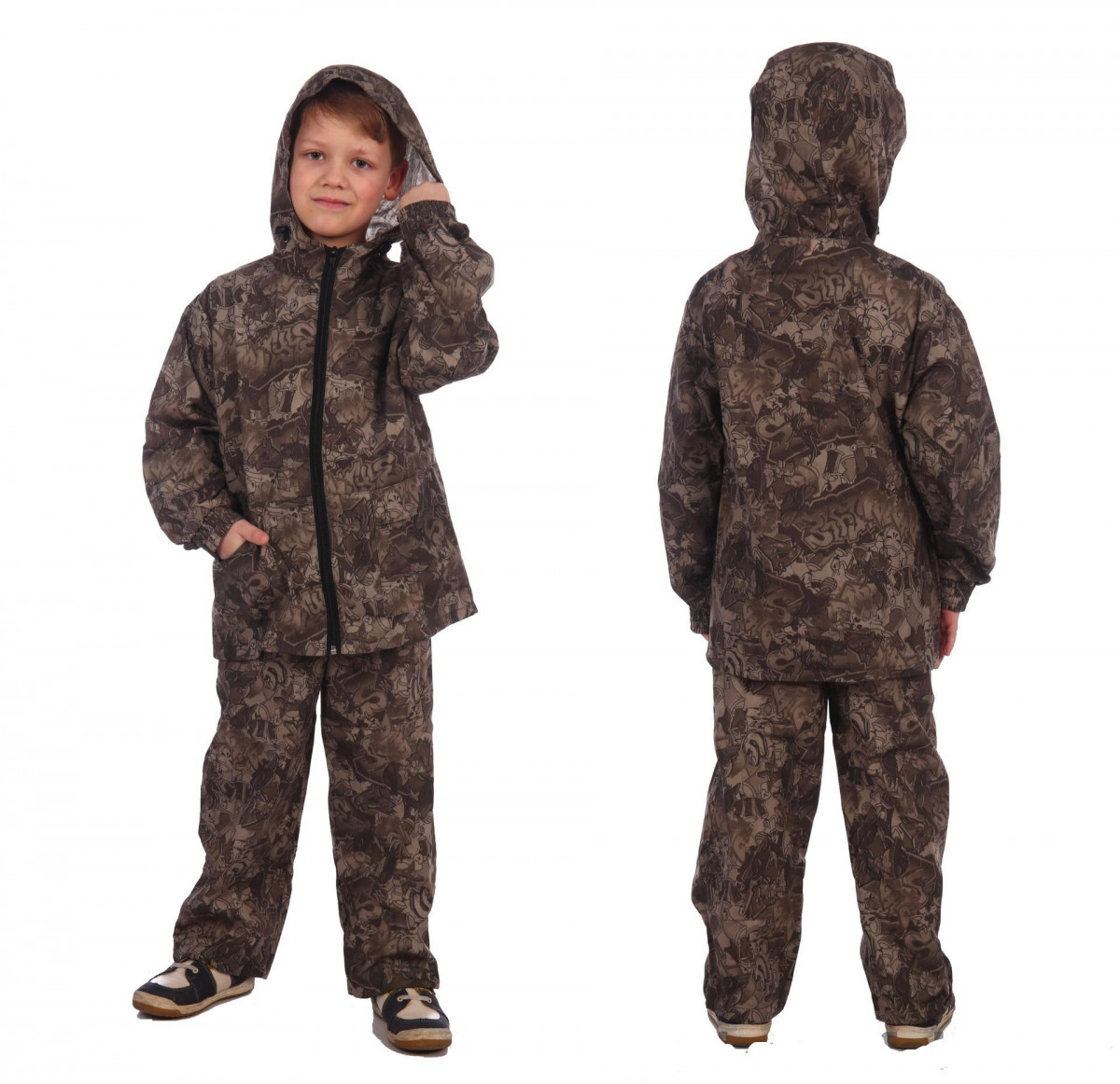 Костюм детский летний Забава выполнен из ткани - 100% хлопок. Куртка на молнии имеет 2-а накладных кармана и несъемный капюшон. Низ куртки и брюк с утяжкой. Брюки на резинке стягиваются шнуром, имеются 2-а прорезных кармана.