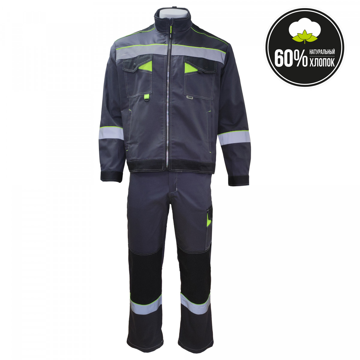 Костюм летний КОРВЕТ КОТТОН КБ1 куртка и брюки: т/серый, лимон и чёрный