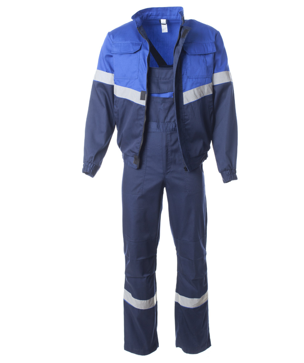 Полукомбинезон с различными многофункциональными карманами.Эластичная резинка по талии спинки.Застёжка гульфика молнию.В правом боковом шве на пуговицы.Бретели на пластиковых застежках (фастексах), регулируются по длине за счет эластичной резинки.В костюме используется световозвращающая лента 50 мм и СВ кант.