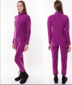 Женский флисовый костюм Тритон "РИЧ" состоит из куртки и брюк. Используется отдельно в прохладную погоду, либо в качестве утепляющего слоя под верхнюю одежду для сохранения тепла тела. Лекала сконструированы с учетом анатомических особенностей женской фигуры. Костюм гарантированно обеспечит максимум комфорта при занятии любимым увлечением. Изготовлен из материала Флис – неструктурированного «валяного» материала, при производстве которого используется специальные технологии плетения волокон и создания ворса, при этом ворс составляет единое целое с основой. Ткань хорошо сохраняет тепло, почти не впитывает влагу, приятна на ощупь, не вызывает аллергии. Благодаря специальной обработке волокон, препятствующей скатыванию ворса, долго сохраняет первоначальный внешний вид. Плотность 270 гр/м2. Цвет фиолетовый.