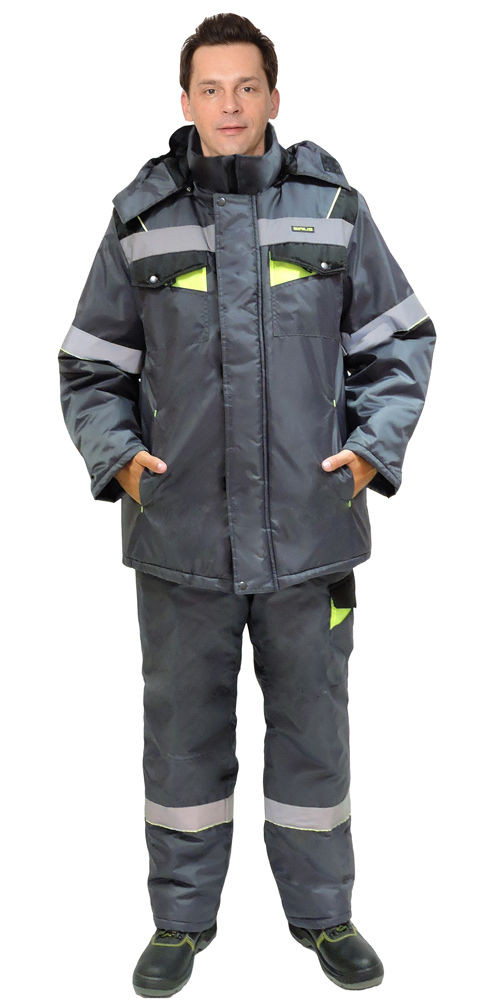 Костюм зимний ХОВАРД куртка дл.+п/к, светло серый/черным и лимон. отд. и СОП тк.Оксфорд