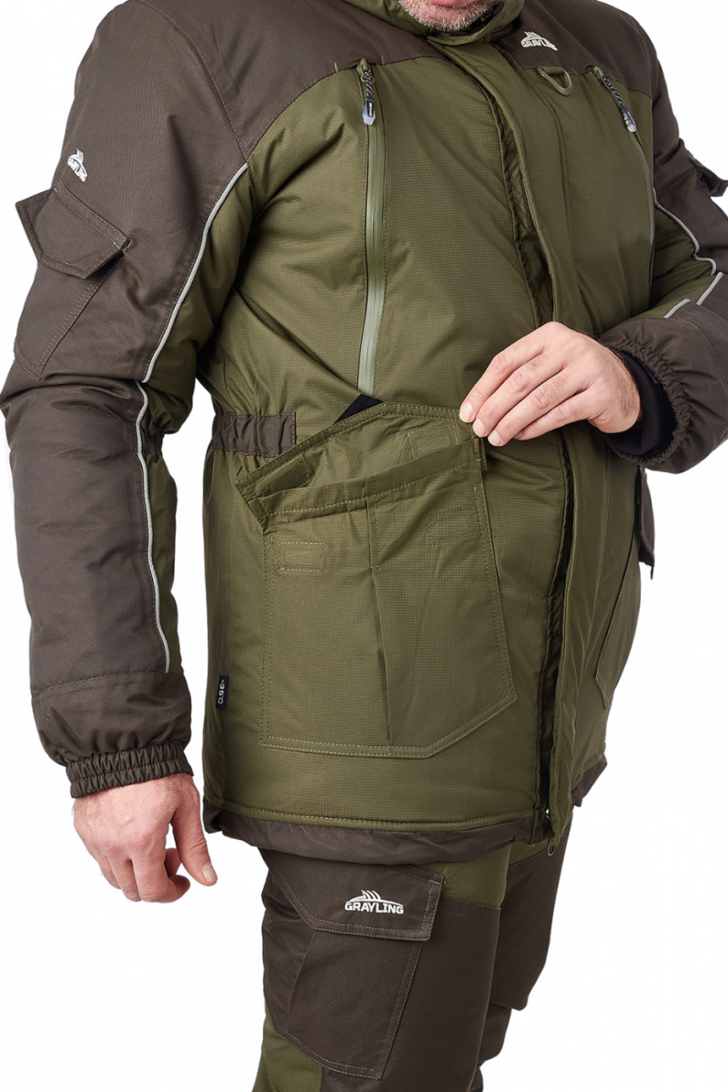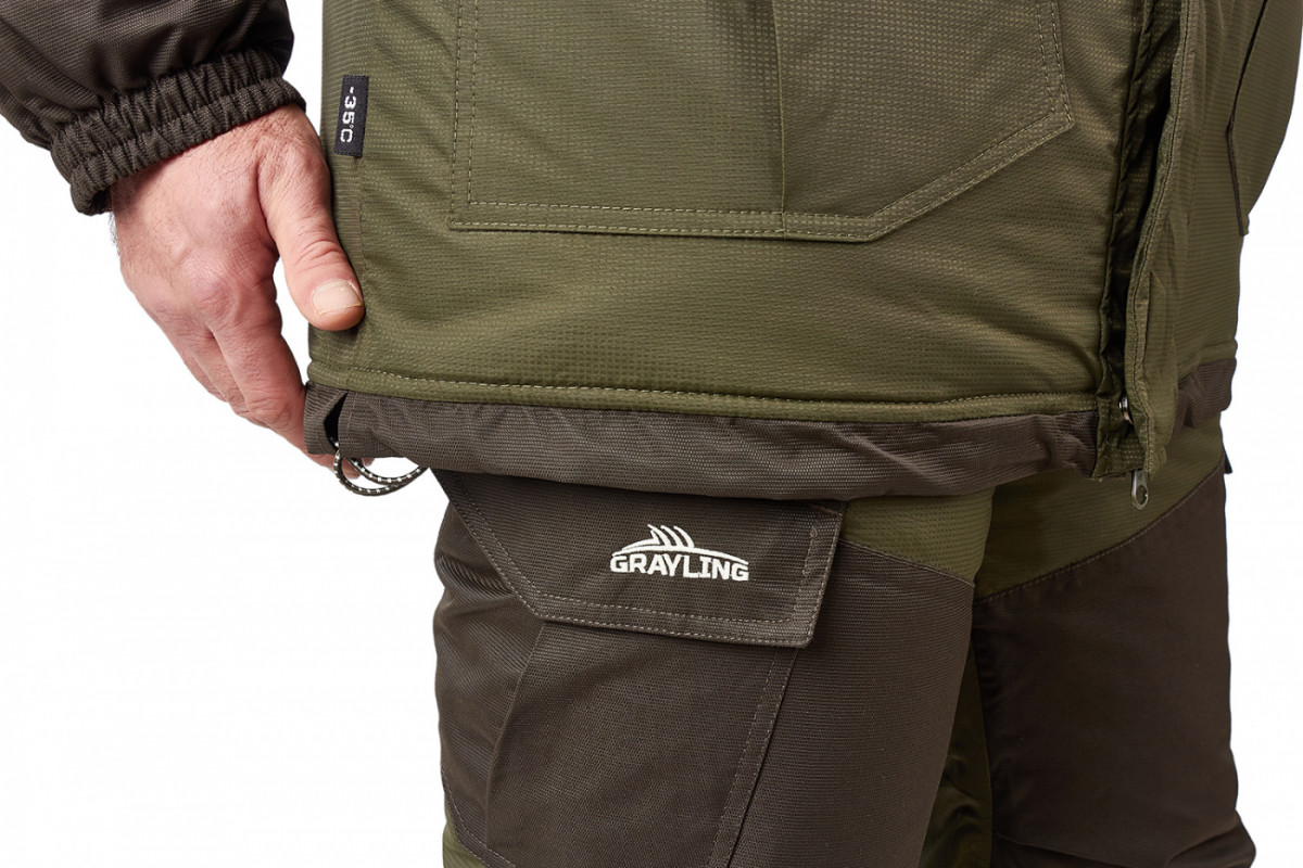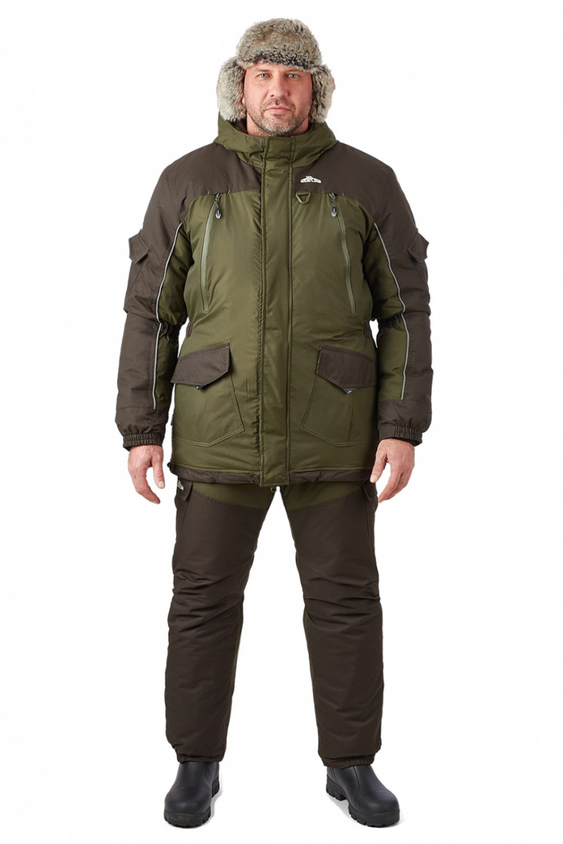 Костюм «Скат» Зима — Универсальный зимний костюм (дальний родственник знаменитой «Горки») специально адаптирован для людей, активно увлекающихся рыбалкой. Костюм состоит из длинной куртки и полукомбинезона анатомического кроя. Для изготовления костюма «Скат» Зима применяют современную нейлоновую ткань с мембранным покрытием, водоупорностью до 5 000 мм вод. ст. Для отделки и армирования используется мембранная ткань «кошачий глаз», которая обладает повышенной износоустойчивостью. Двойная защита от холода достигается за счет применения современного утеплителя «Термотекс». Хлопковый подклад обеспечивает оптимальный микроклимат. Костюм «Скат» Зима рекомендован для рыбаков и любителей активного отдыха в зимний период. Мембрана 10000/10000 анатомические утяжки на талии, локтях двойная ветрозащитная планка двухзамковая молния утеплитель