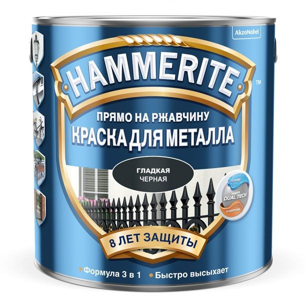 Краска для металла молотковая Hammerite — защитное покрытие для черных металлов, наносимое непосредственно на пораженную ржавчиной поверхность. В составе — антикоррозионные добавки и преобразователи ржавчины. Готовое покрытие имеет декоративный вид с визуальным эффектом ручной чеканки по металлу. Эффект создается за счет наполнителей из алюминиевой крошки и силиконовых добавок.