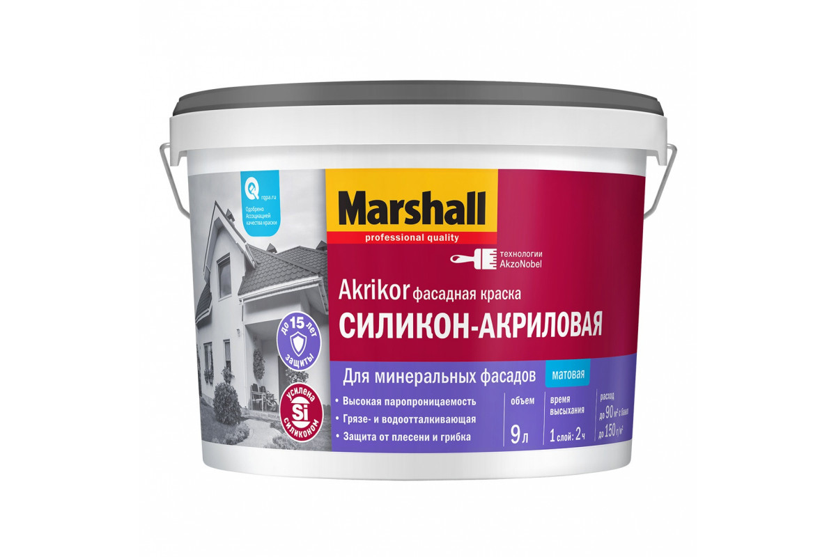 Краска Marshall AKRIKOR Фасадная силикон-акриловая мат BW 9л