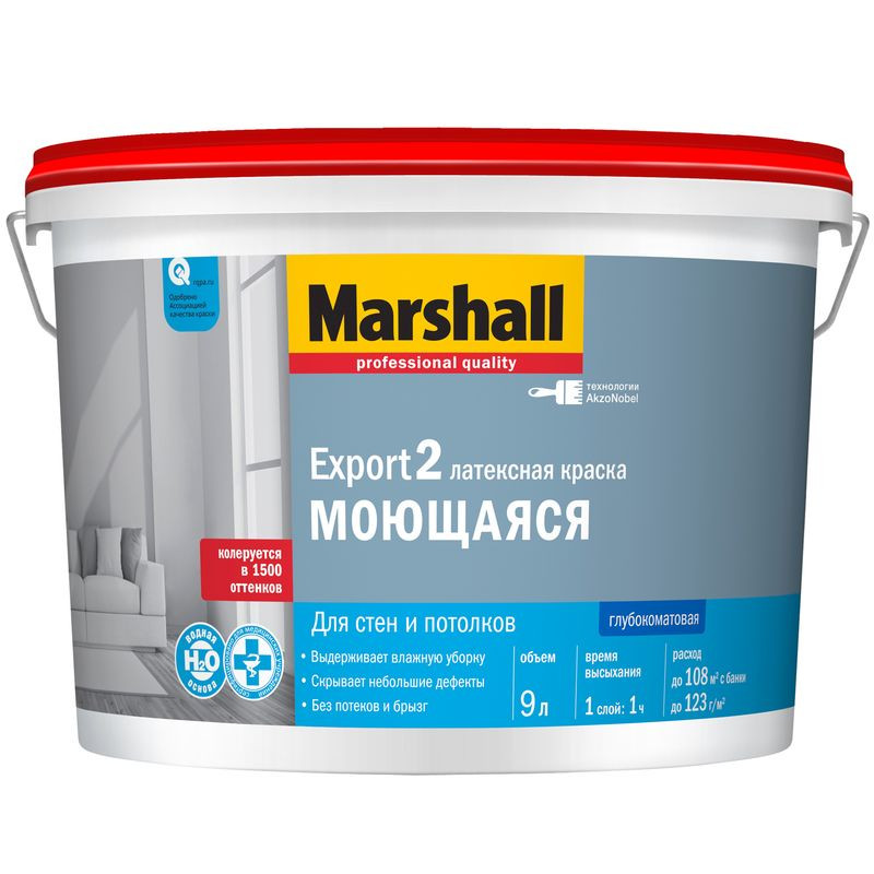 Краска Marshall Export 2 глубокоматовая латексная BW 9л