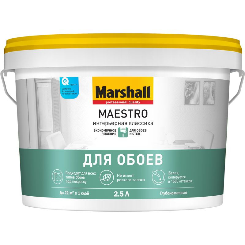 Краска Marshall MAESTRO Интерьерная классика для обоев белая BW 2,5л