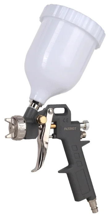 Краскораспылитель PATRIOT LV 162А 830901005 работает на сжатом воздухе и отличается безопасностью в эксплуатации - нет риска короткого замыкания. Модель применяется для покраски небольших поверхностей - участка стены, корпуса автомобиля, элементов строительной конструкции. Бачок для краски располагается сверху и не мешает пользователю при работе. Простая конструкция приспособления не ломается и не вызывает затруднений при эксплуатации.