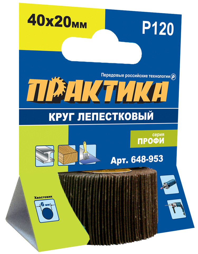 Круг 40х20мм P120 лепестковый с оправкой ПРАКТИКА хвостовик 6 мм серия Профи