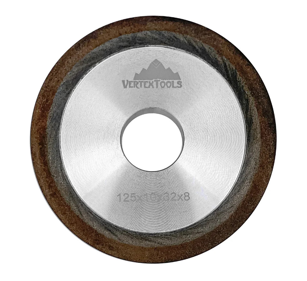 Круг алмазный шлифовальный 125x10x32x8 мм (1/50) vertextools 0505-04-125-17 служит для заточки многолезвийного режущего твердосплавного инструмента.