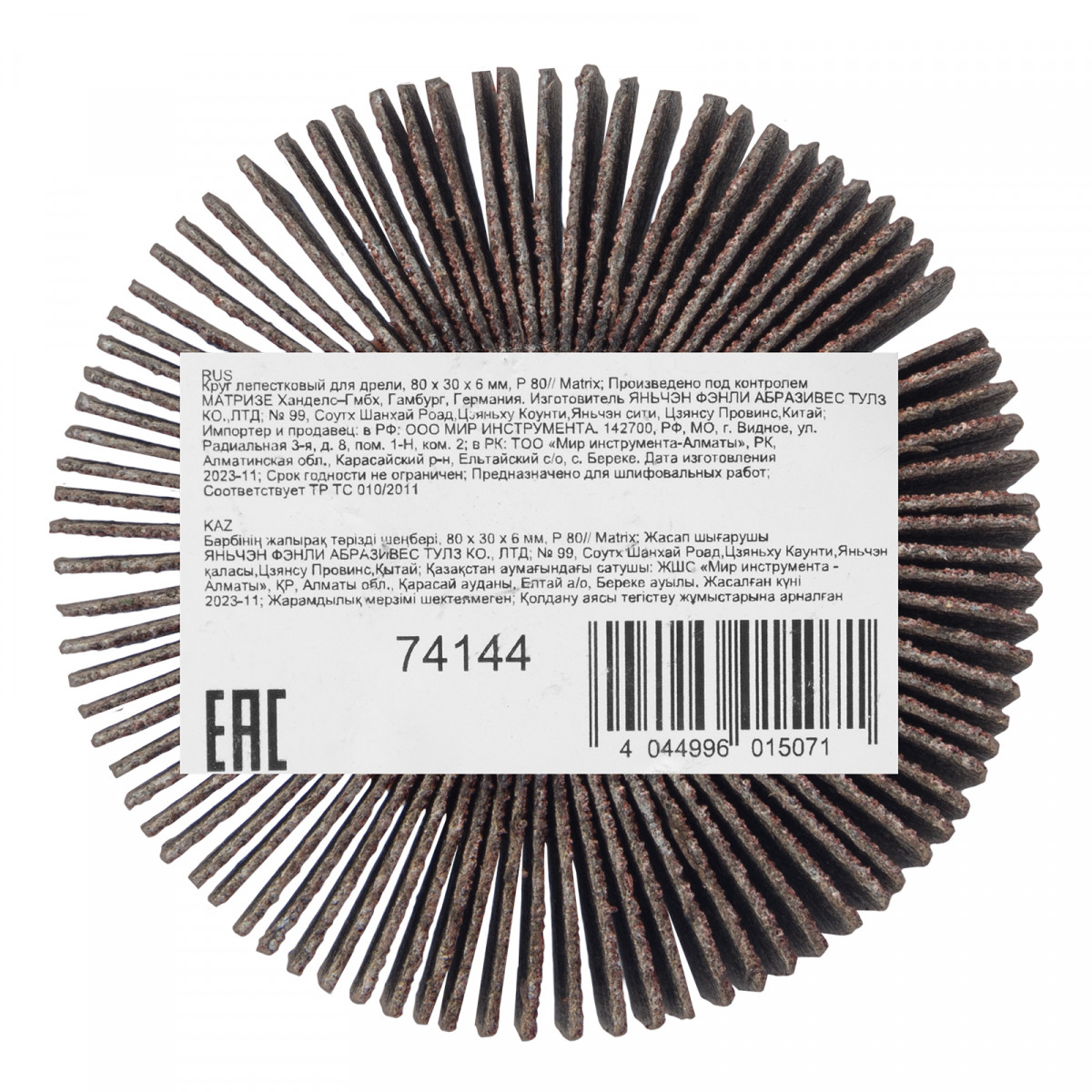 Круг лепестковый для дрели, 80 х 30 х 6 мм, P 80 Matrix