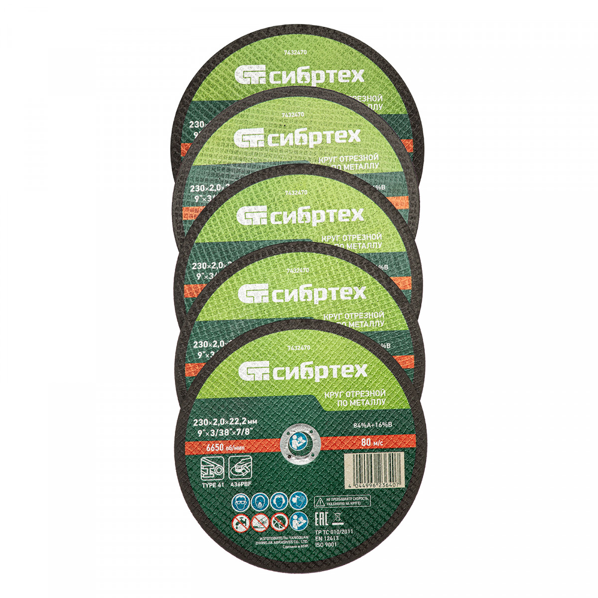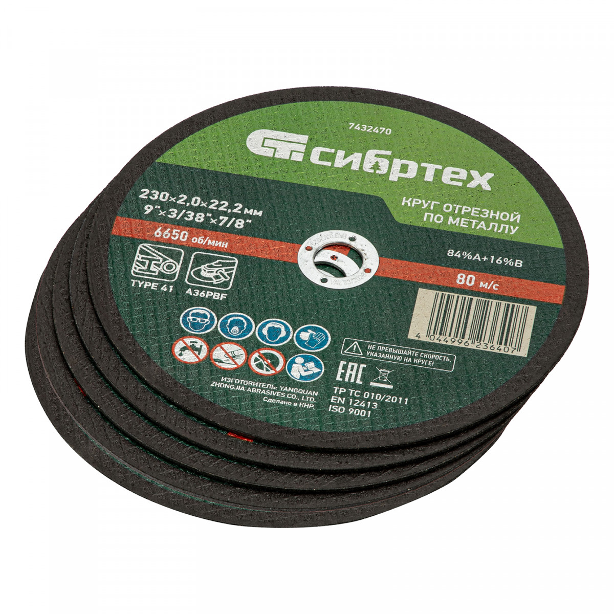 Круг отрезной по металлу, 230 х 2,0 х 22,2 мм, 84%A+16%B, в метал.банке, 5 шт. Сибртех