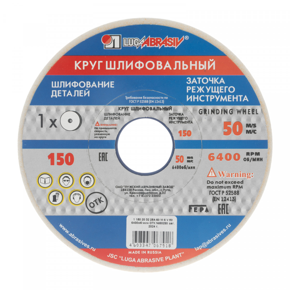 Шлифовальный круг Луга 73457 размером 150 х 20 х 32 мм, с абразивом 25A (белый электрокорунд), зернистостью F60 и твердостью M, N, устанавливается на точило с соответствующим посадочным диаметром и предназначен для шлифования закаленных деталей из углеродистых, нержавеющих и быстрорежущих сталей. Подходит также для заточки режущих кромок, обработки тонких деталей и инструментов — зубьев, ножей, сверл, резцов. Круг успешно справляется с твердыми материалами благодаря абразивным частицам из белого электрокорунда.