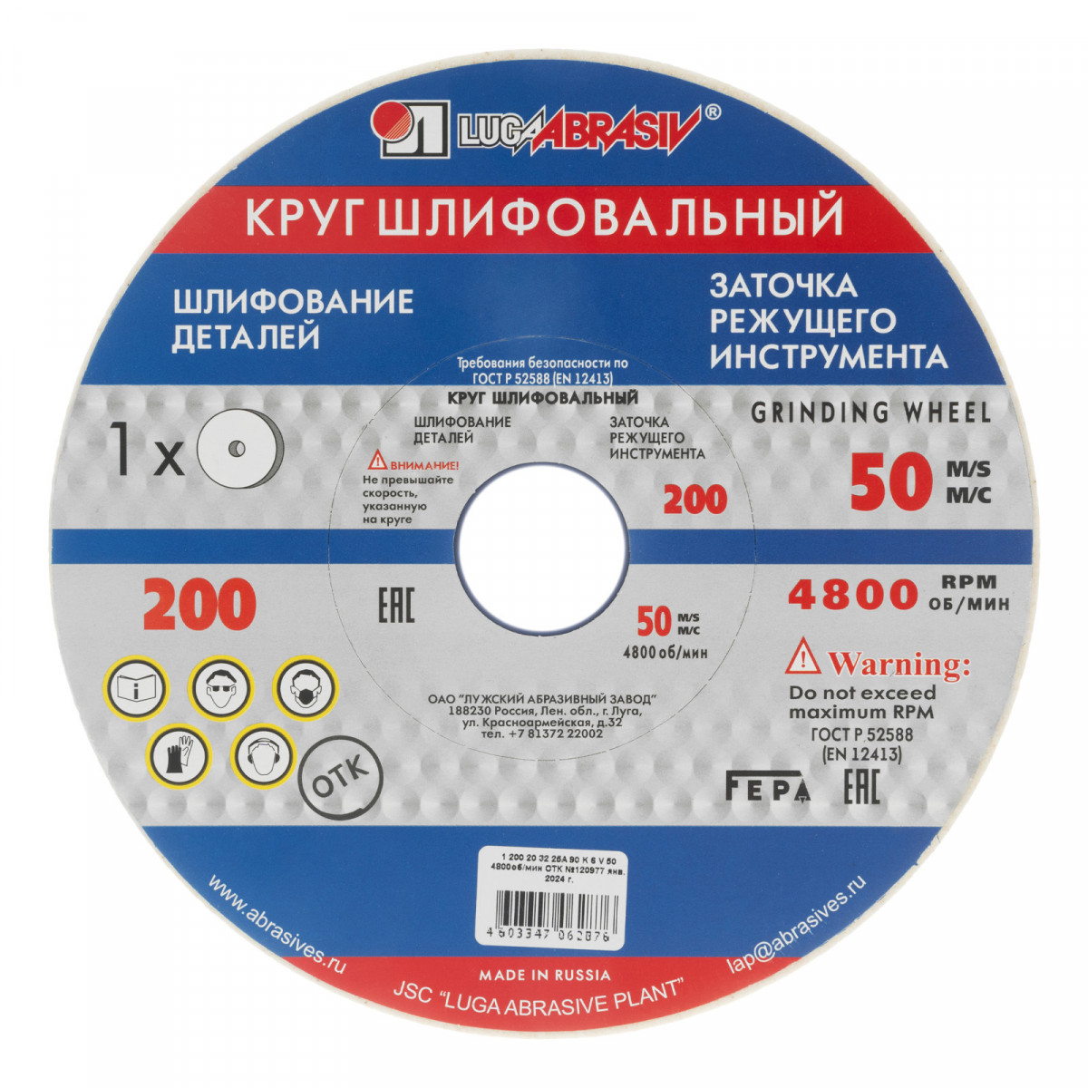 Круг шлифовальный, 200 х 20 х 32 мм, 25А, F90, (K, L) "Луга"