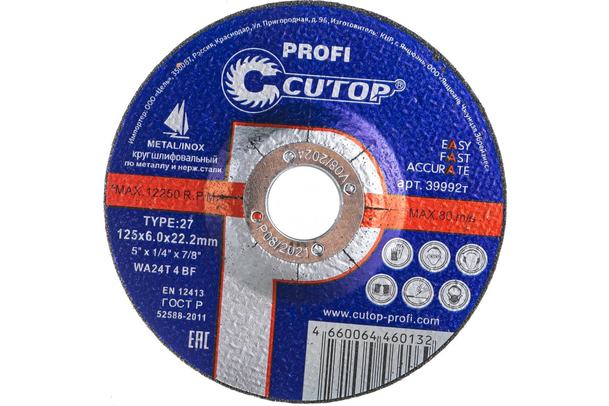 Диск T27 CUTOP является сменным элементом для угловых шлифовальных машин. Применяется для шлифования по черным и цветным металлам. Диск обладает высокой производительностью и большим ресурсом работы. Оснастка изготавливается на современном оборудовании под строгим контролем качества.