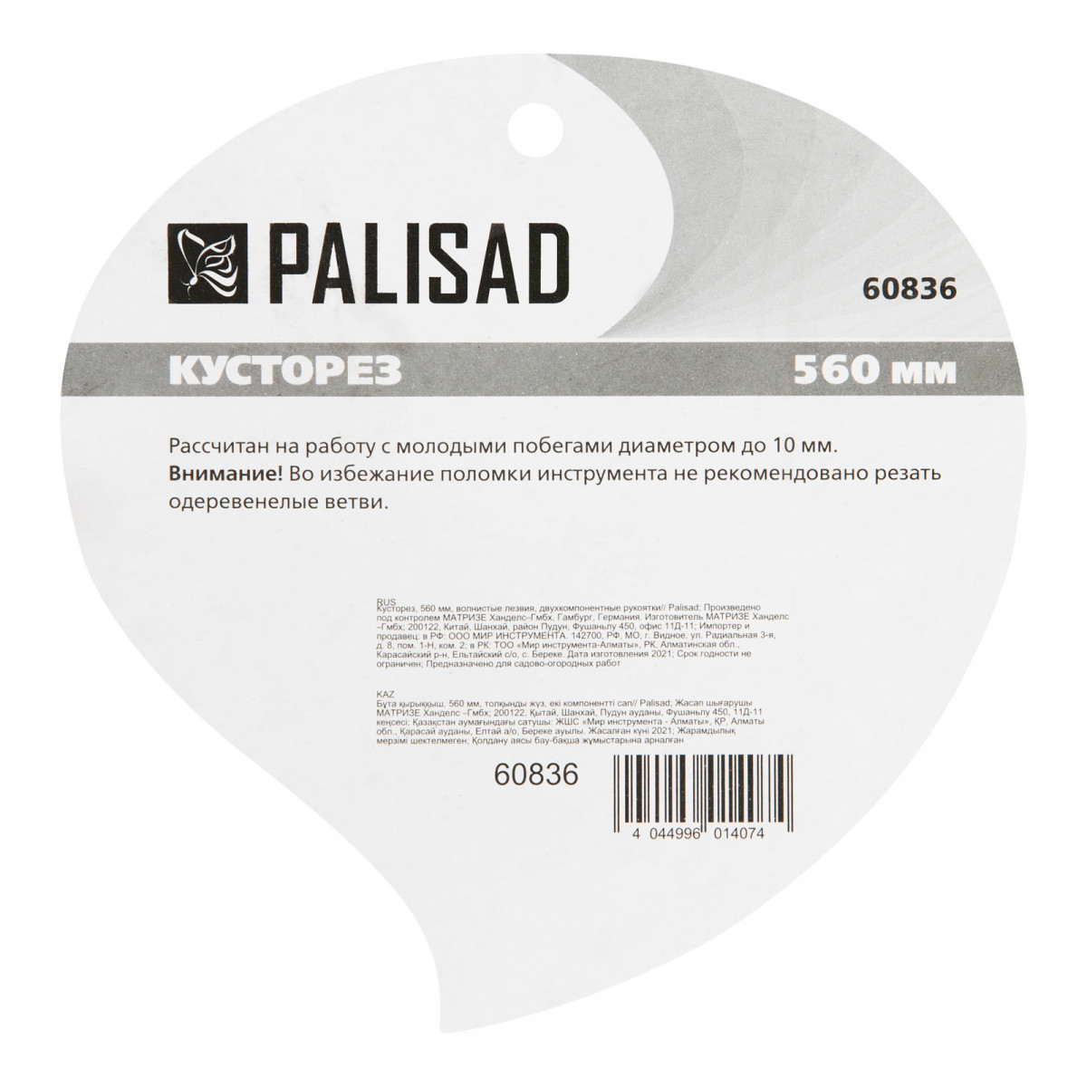 Кусторез Palisad 60836 длиной 560 мм, с волнистыми лезвиями и двухкомпонентными рукоятками, позволяет провести омолаживающую обрезку молодых побегов толщиной до 10 мм. С его помощью можно ухаживать за кустарниками и живой изгородью. Тефлоновое покрытие основного лезвия обеспечивает легкость реза. Волнистые кромки надежно удерживают ветки, поэтому инструмент подходит для подравнивания побегов с гладкой корой.