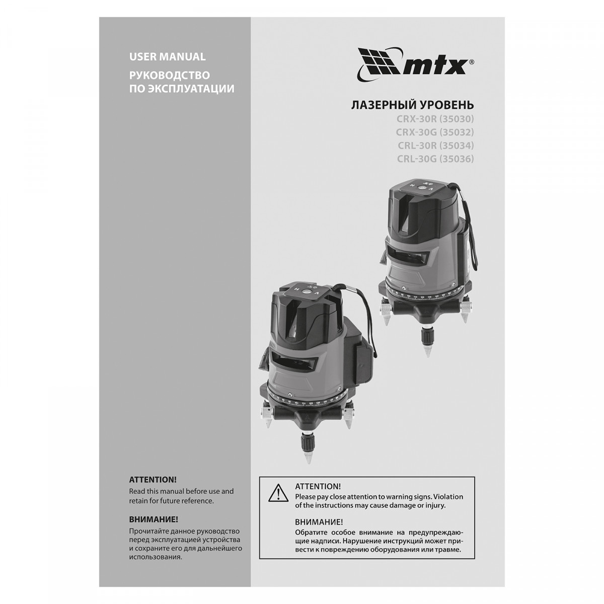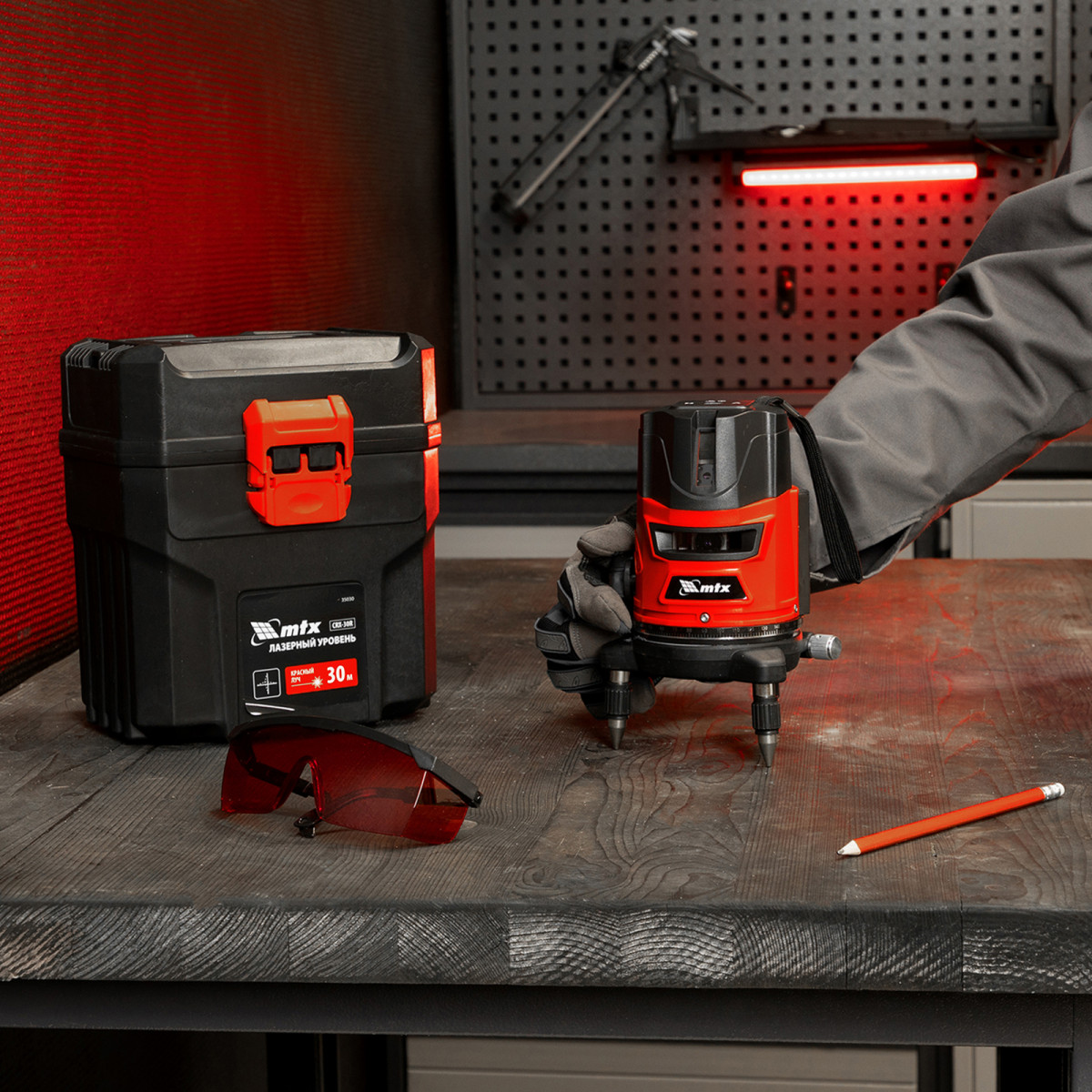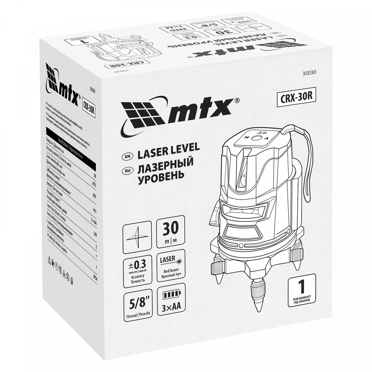 Лазерный уровень CRX-30R, 30 м, красный луч, батарейки, резьба 5/8" MTX